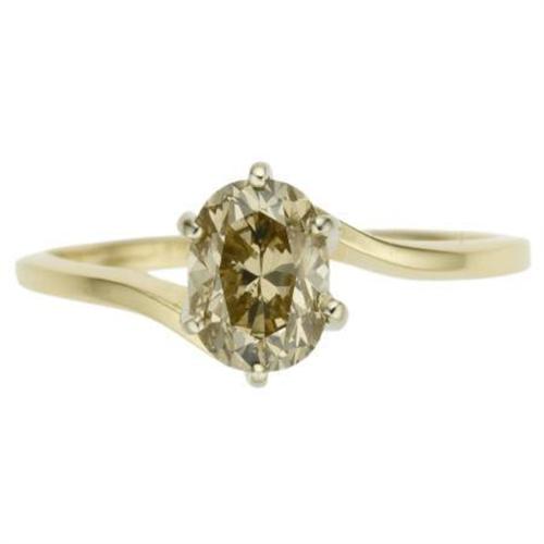 <B>Colored Diamond, Gold Ring</B></I><BR><BR>The ring centers an oval-shaped brownish diamond measuring 8.00 x 5.40 mm and weighing approximately 0.40 carat, set in 14k yellow gold. Gross weight 2.20 grams.<BR>Note: Size 7-1/2 (sizeable)<BR><BR> <B>Condition Report:</B> Normal signs of wear as appropriate with age.<BR><BR><b>Shipping:</b> Miscellaneous Collectibles, Smal (<a target="_blank" href="http://www.heritageauctions.com/common/shipping.php">view shipping information</a>)