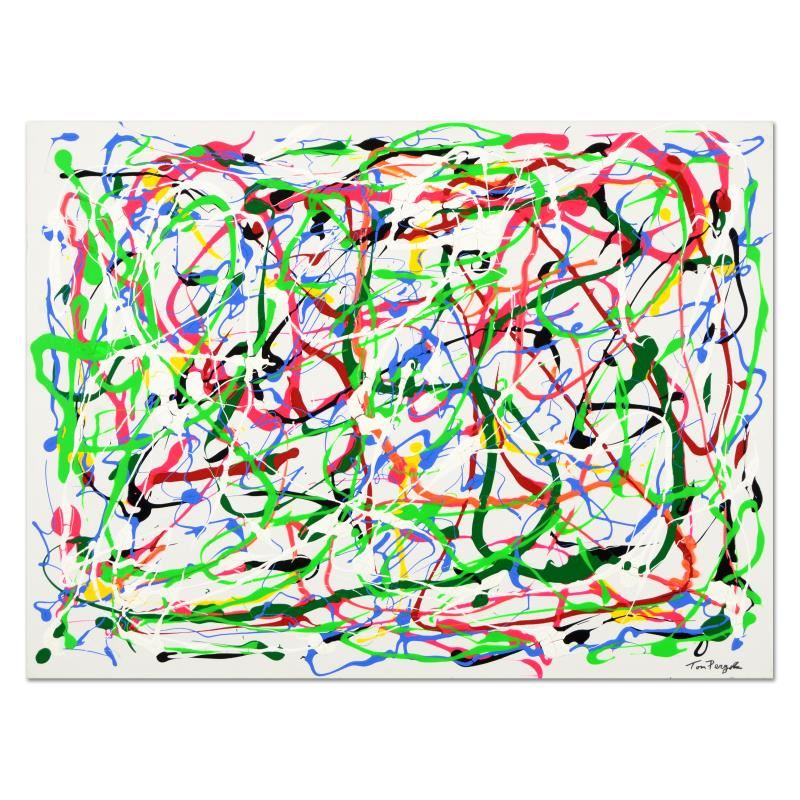 "Colored Dream" is an original mixed media on canvas by Tom Pergola, hand signed by the artist. This piece cones gallery wrapped. Includes Certificate of Authenticity. Measures approx. 40" x 30" (image).