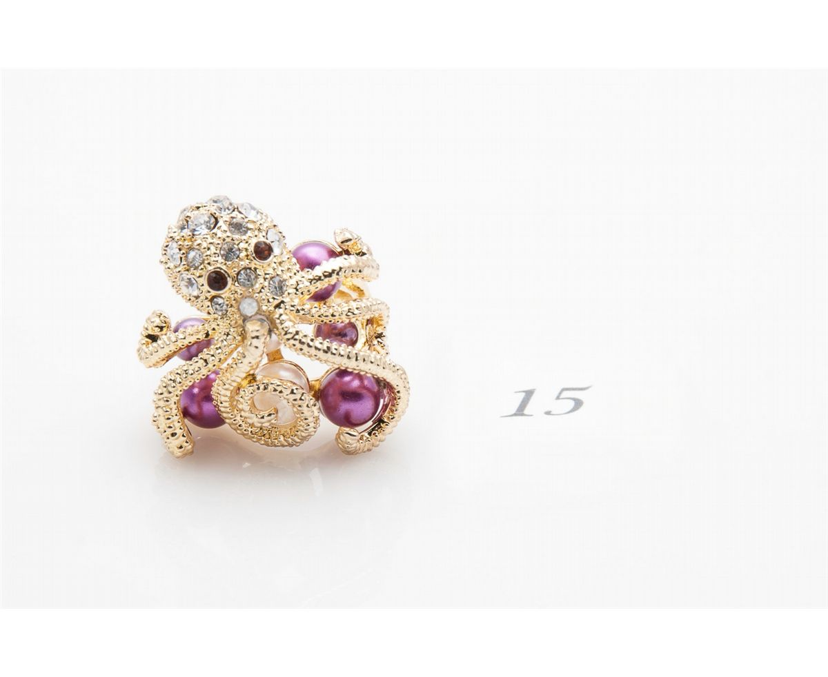 Colored Pearl & Crystal Octopus Ring