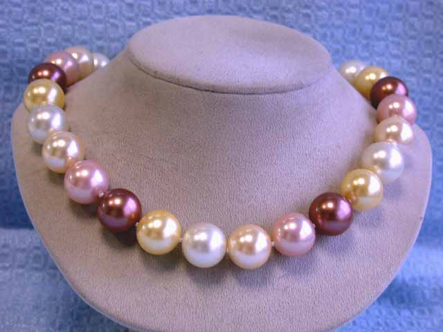 Shell Pearls Necklace approximately 14 mm beads w 14k Gold Clasp and approximately 19 inches long.