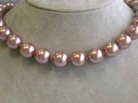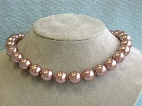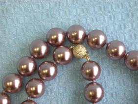 Shell Pearl Necklace approximately 14.3 mm bead size with 14k Yellow Gold Clasp and the length is approximately 18 inches long