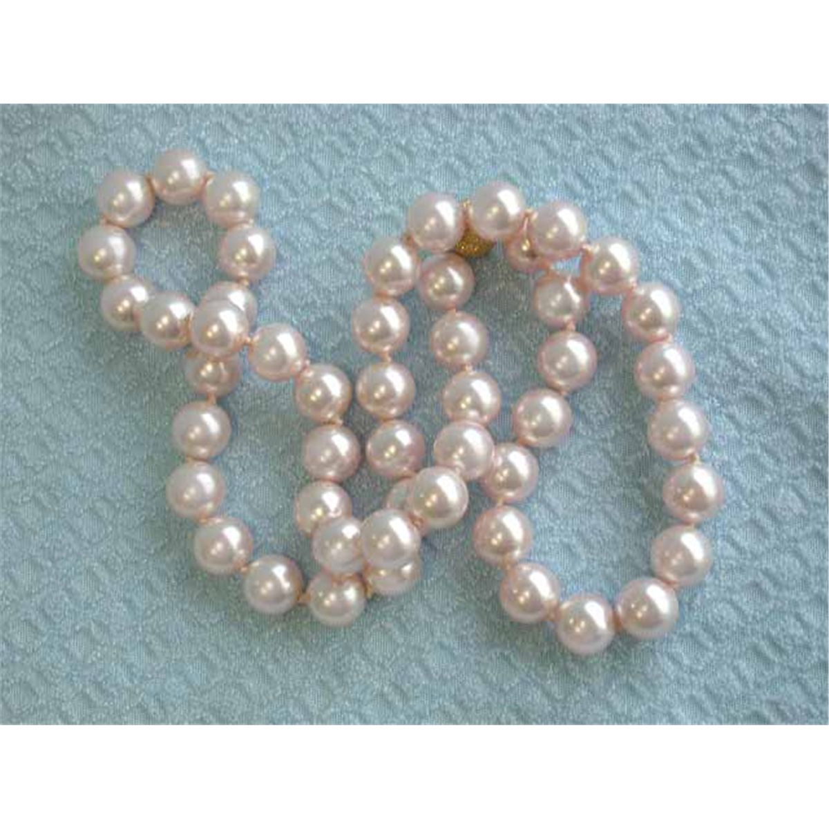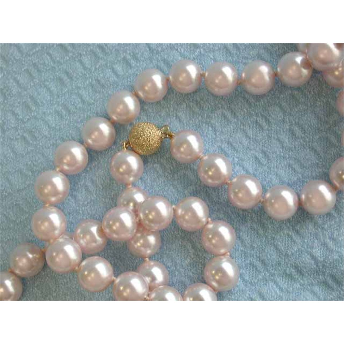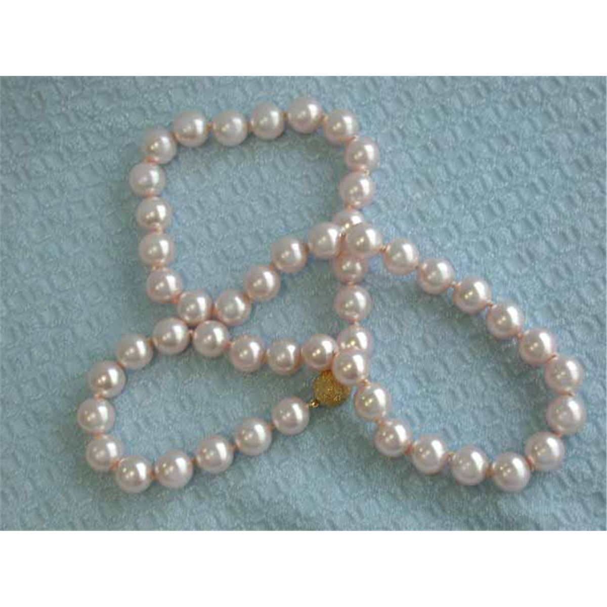 Shell Pearl Necklace approximately 10 mm bead size with 14k Yellow Gold Clasp and the Length is approximately 22 inches long