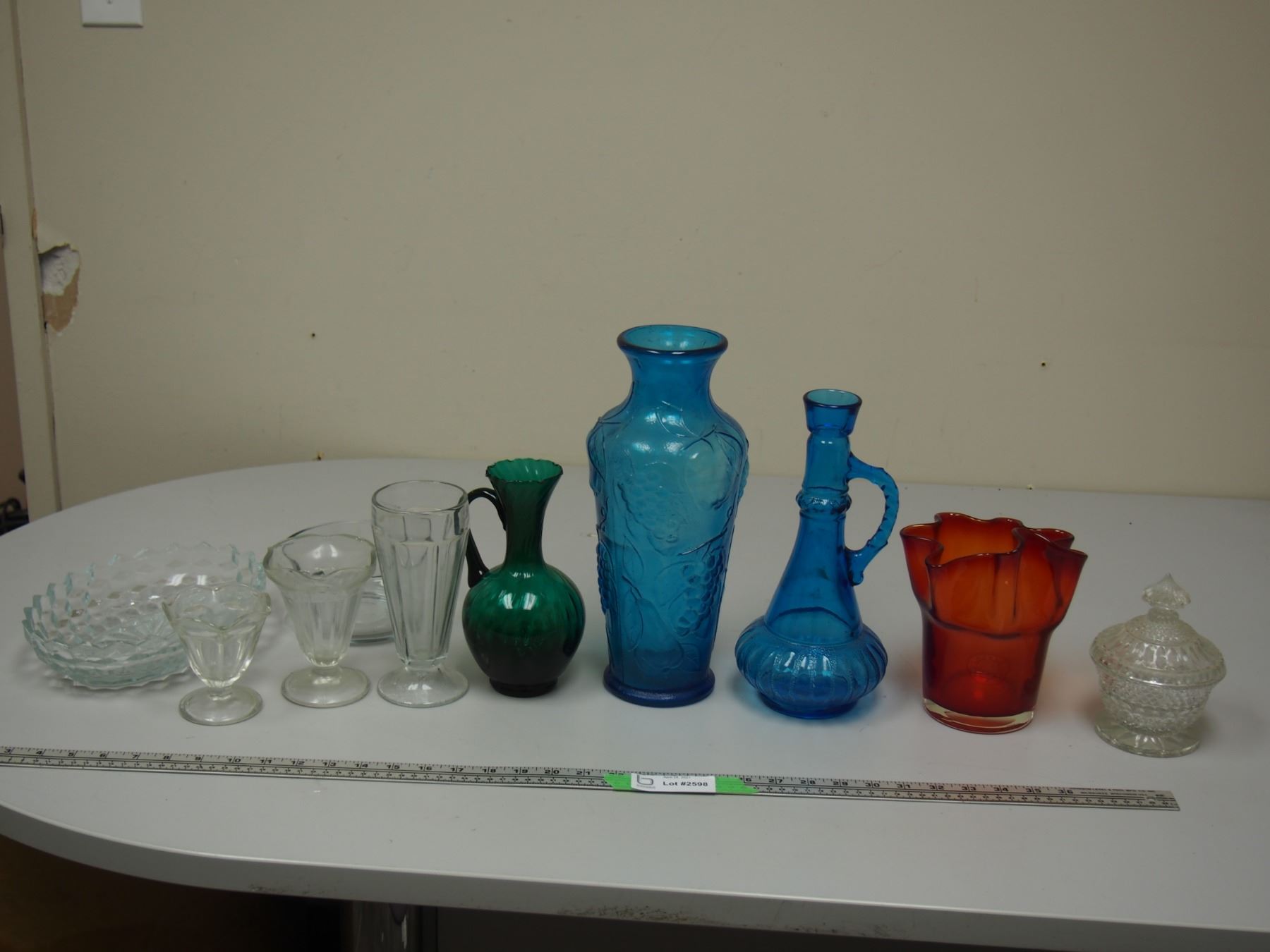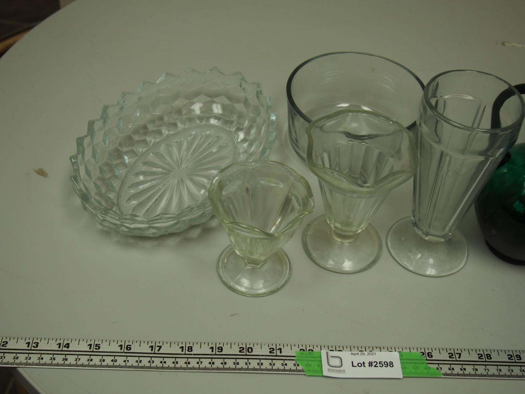 Colored and Clear Glass Vases, Ice Cream Glasses and Other