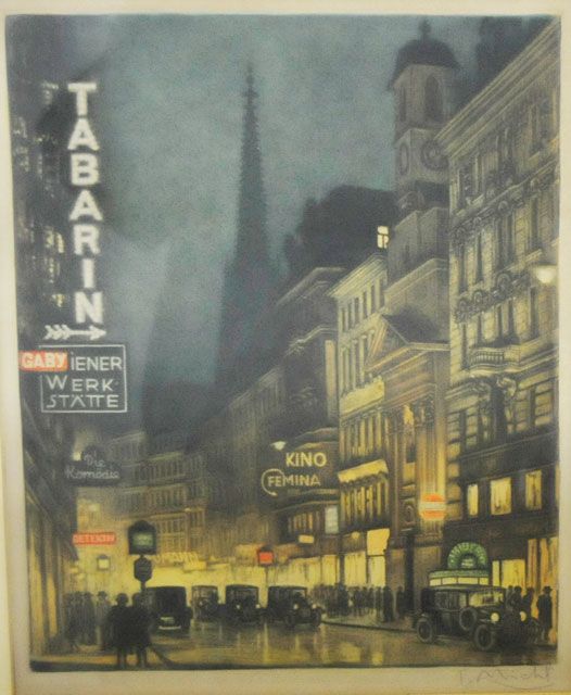 "German Street Scene". Approx. 13.5" x 10.75". Please read our terms of sale.