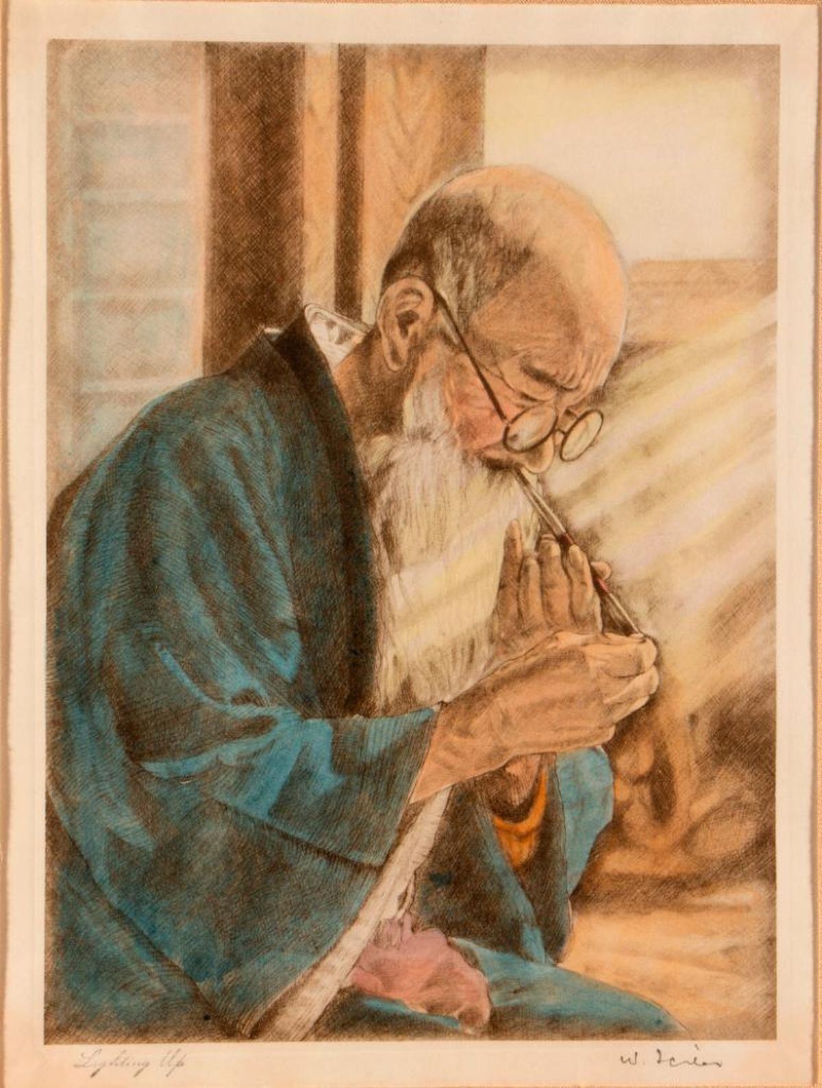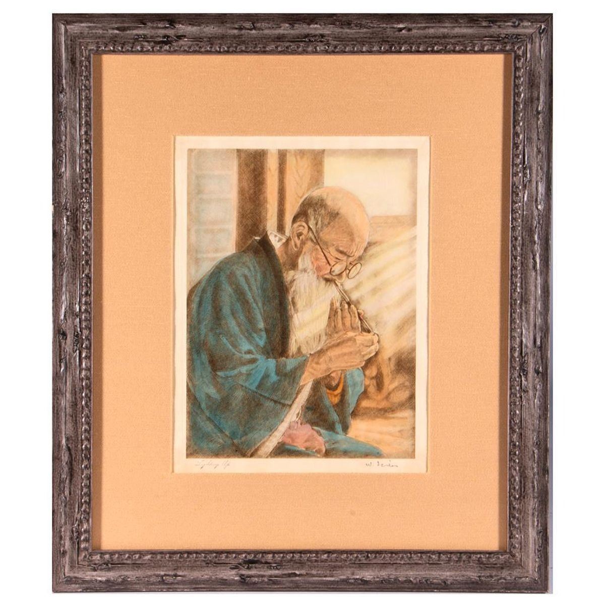Colored etching. Artwork: Height-11 1/4 inches; Width-8 1/2 inches. Frame: Height-21 inches; Width-18 inches.