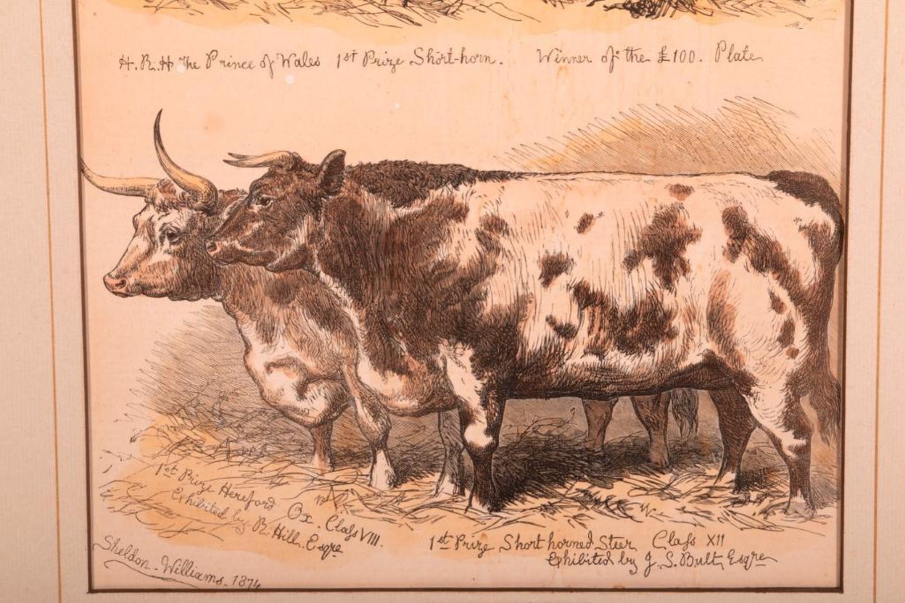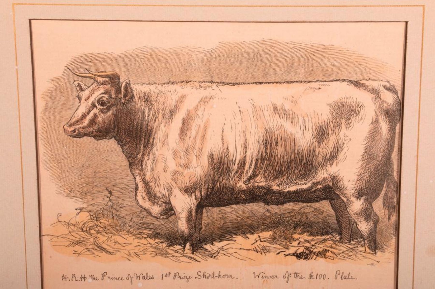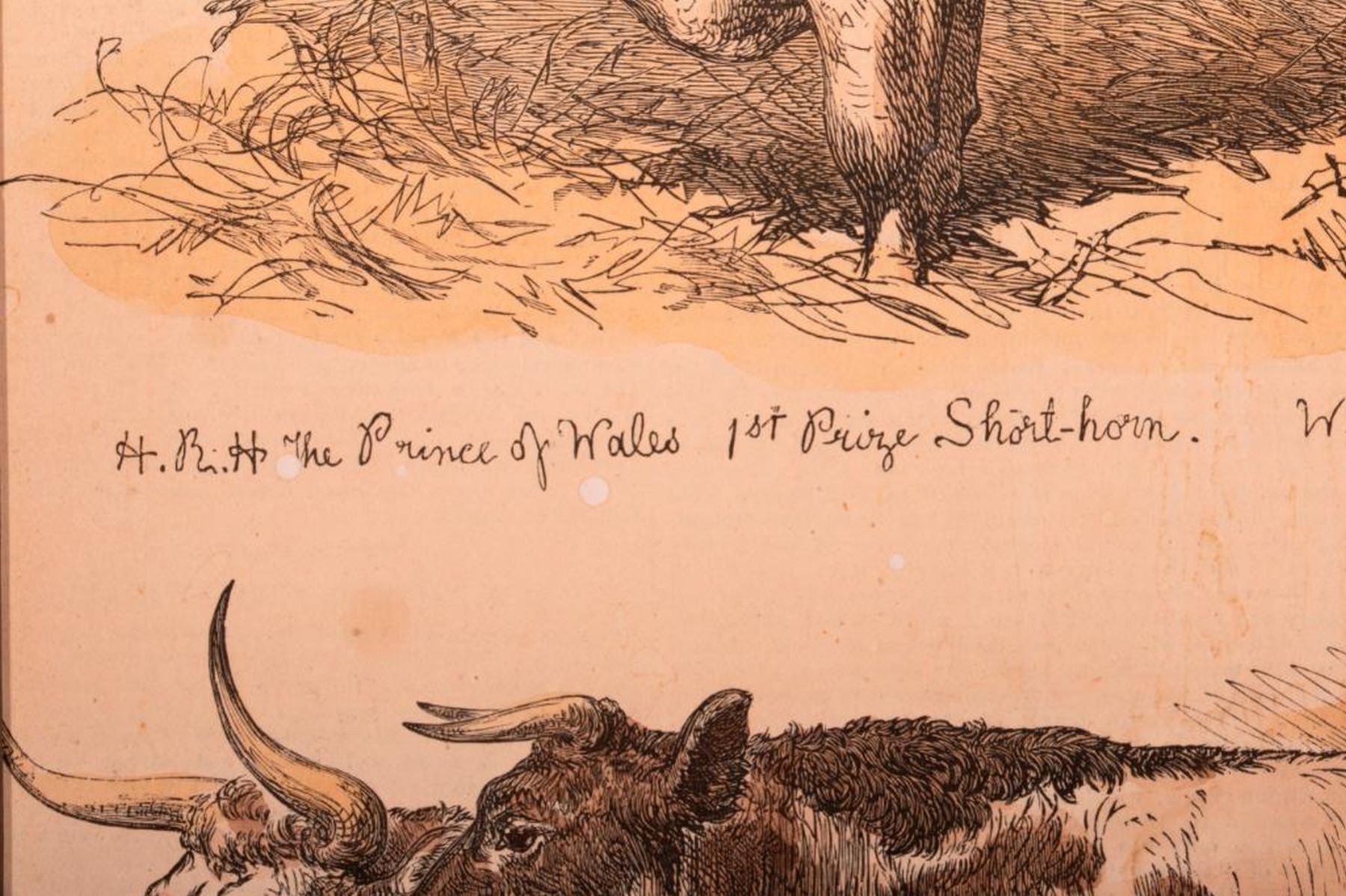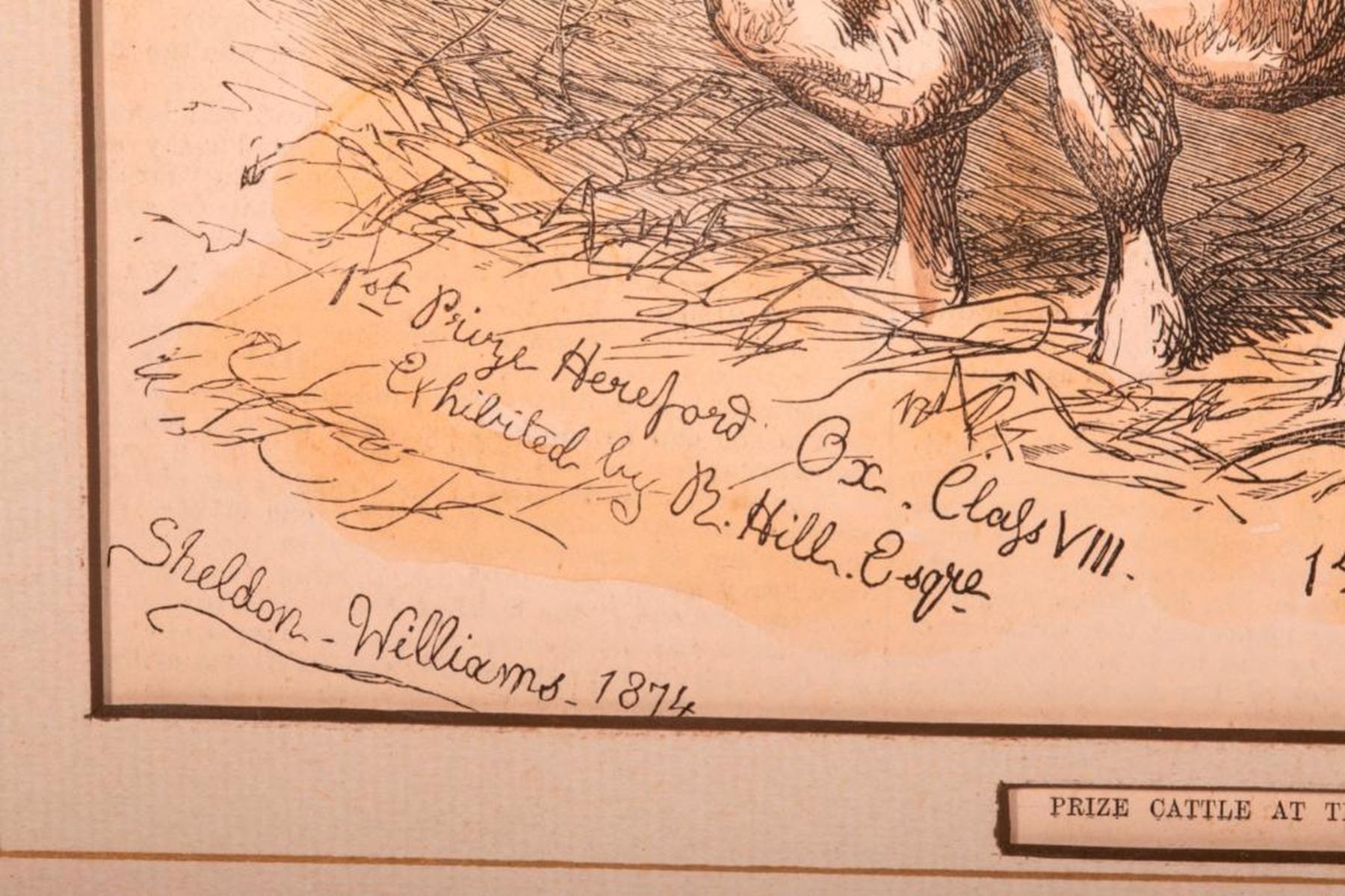 Frame: 19 ¼ inches high x 15. Image: 13 ½ inches high x 9. Condition good, "The Cattle at the Smithfield Club Show". Missing glass.