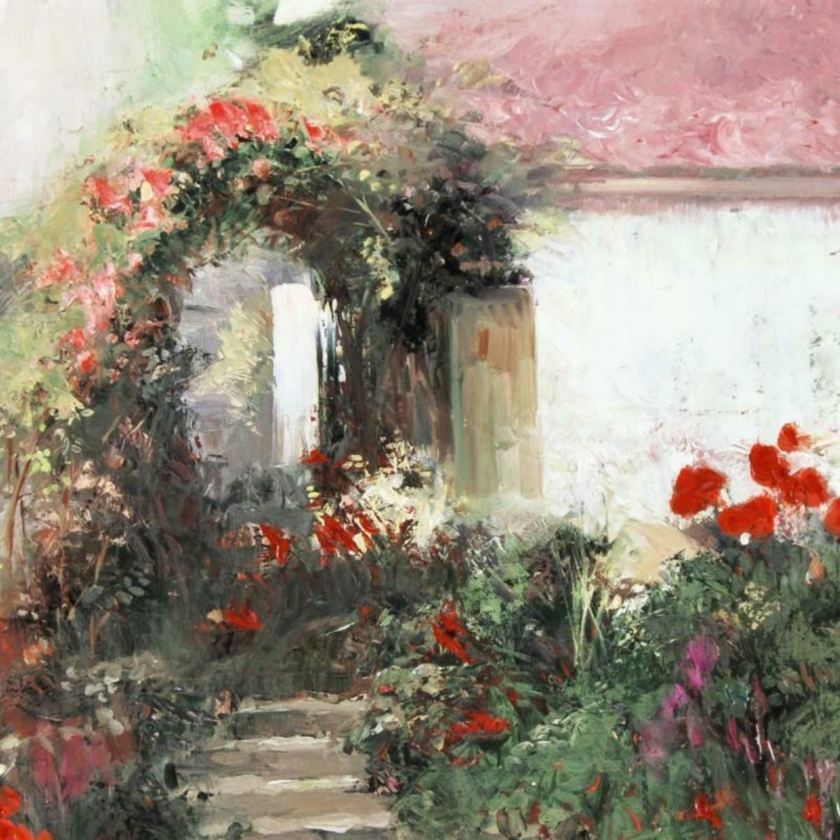 "Colorful Archway" is an artist embellished limited edition giclee on canvas by Pino (1939-2010), CP numbered and hand signed by the artist. Includes Certificate of Authenticity. Measures approx. 38" x 26" (image). This piece is not stretched.