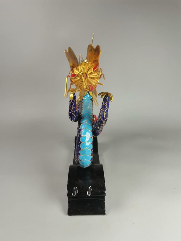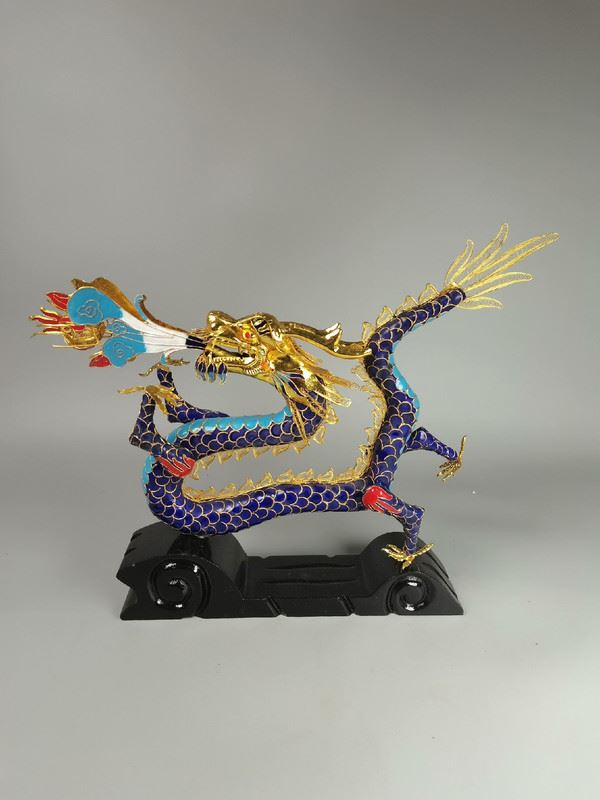 This exquisite dragon figurine blends traditional Chinese craftsmanship with modern design elements. Featuring vibrant colors and metallic accents, it showcases the dragon's majesty and grace, symbolizing power and good fortune. Its intricate details and unique design make it a collectible piece of art.