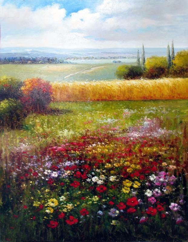 Alexi Romenelle | Title of Art: Fields in Full Bloom | Medium: Original Acrylic Painting Hand Signed by the Artist on Canvas | Unframed Size: 40 x 30 inches | Framed Size: Stretched | Value: $ 2300 | ArtForSale.com