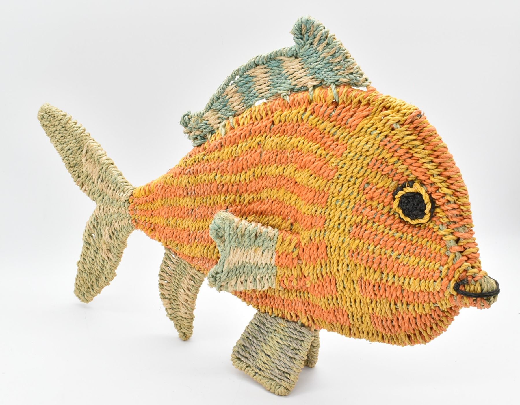 Colorful Jute Wrapped Wire Fish Decor, measures 13'' x 19''