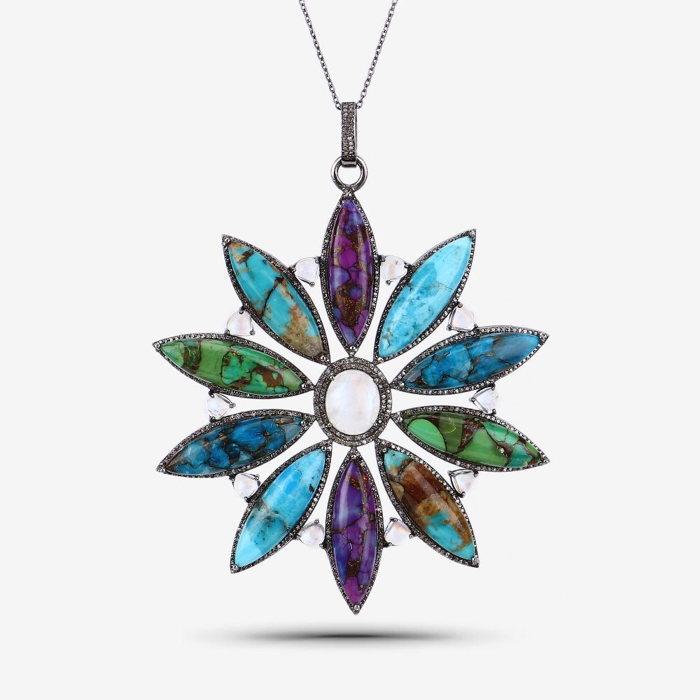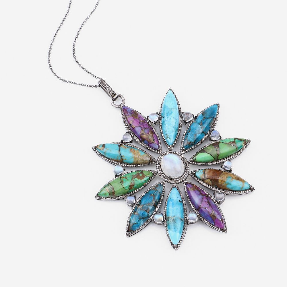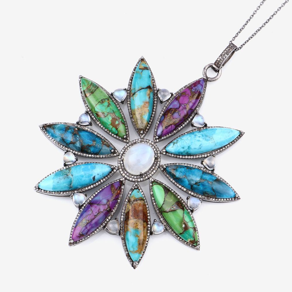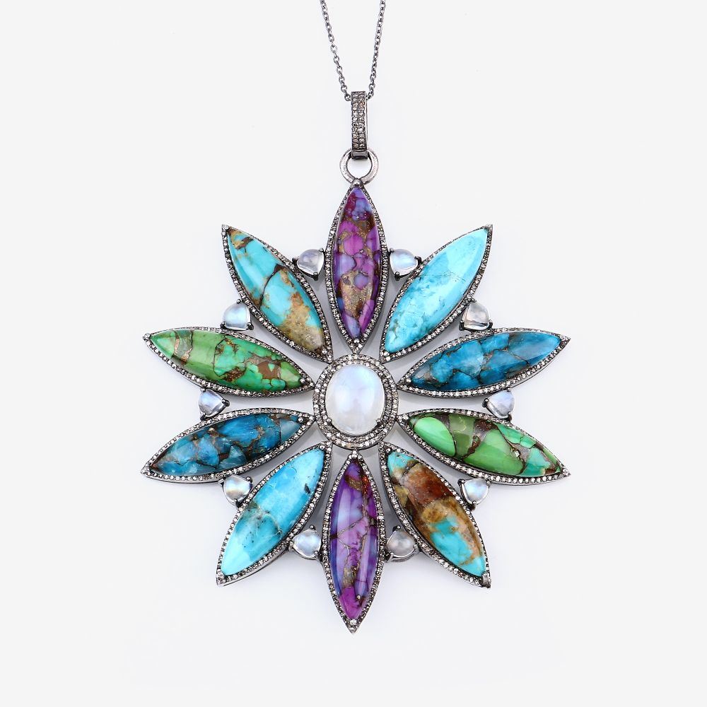TITLE DESCRIPTION: Colorful Turquoise, Moonstone, & amp; Diamond Necklace