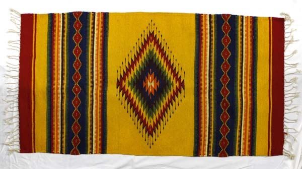 Colorful Zapotec Wool Textile Fringed Rug, measures 31'' x 59'', fringed on both ends, phenomenal vibrant colors