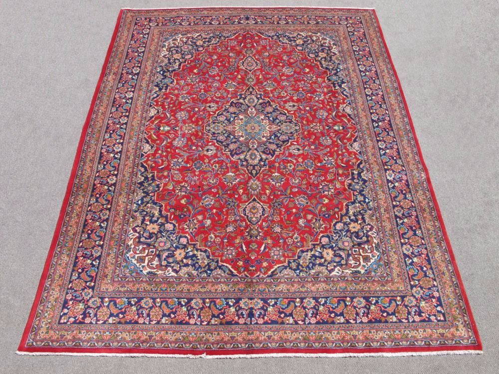Rug: Handmade Semi Antique Persian Mashhad; Material: Fine quality baby lamb's wool pile, all natural vegetable dye; Size: 12.9 x 9.8 feet; Foundation: Cotton; Design: Persian Mashhad; Origin: Iran