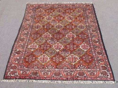 Rug: Handmade Tribal Desert Semi Antique Persian Bakhtiari Rug Material: Fine quality baby lamb's wool pile, all natural vegetable dye Size: 7.0 X 10.0 feet Foundation: Cotton Design: Persian Bakhtiari Origin: Iran