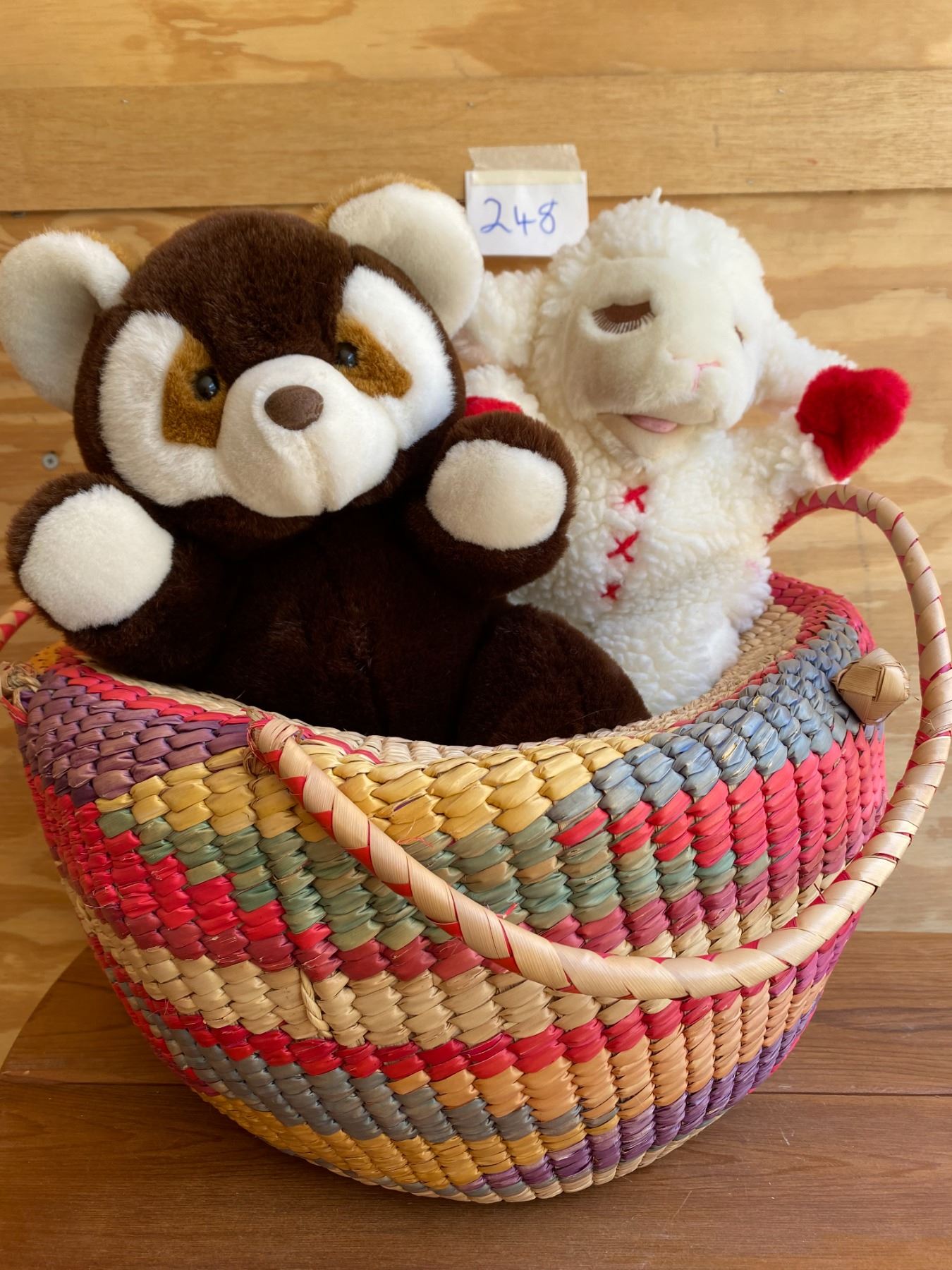 Colorful basket filled & adorable plushies (13) 2 are puppets