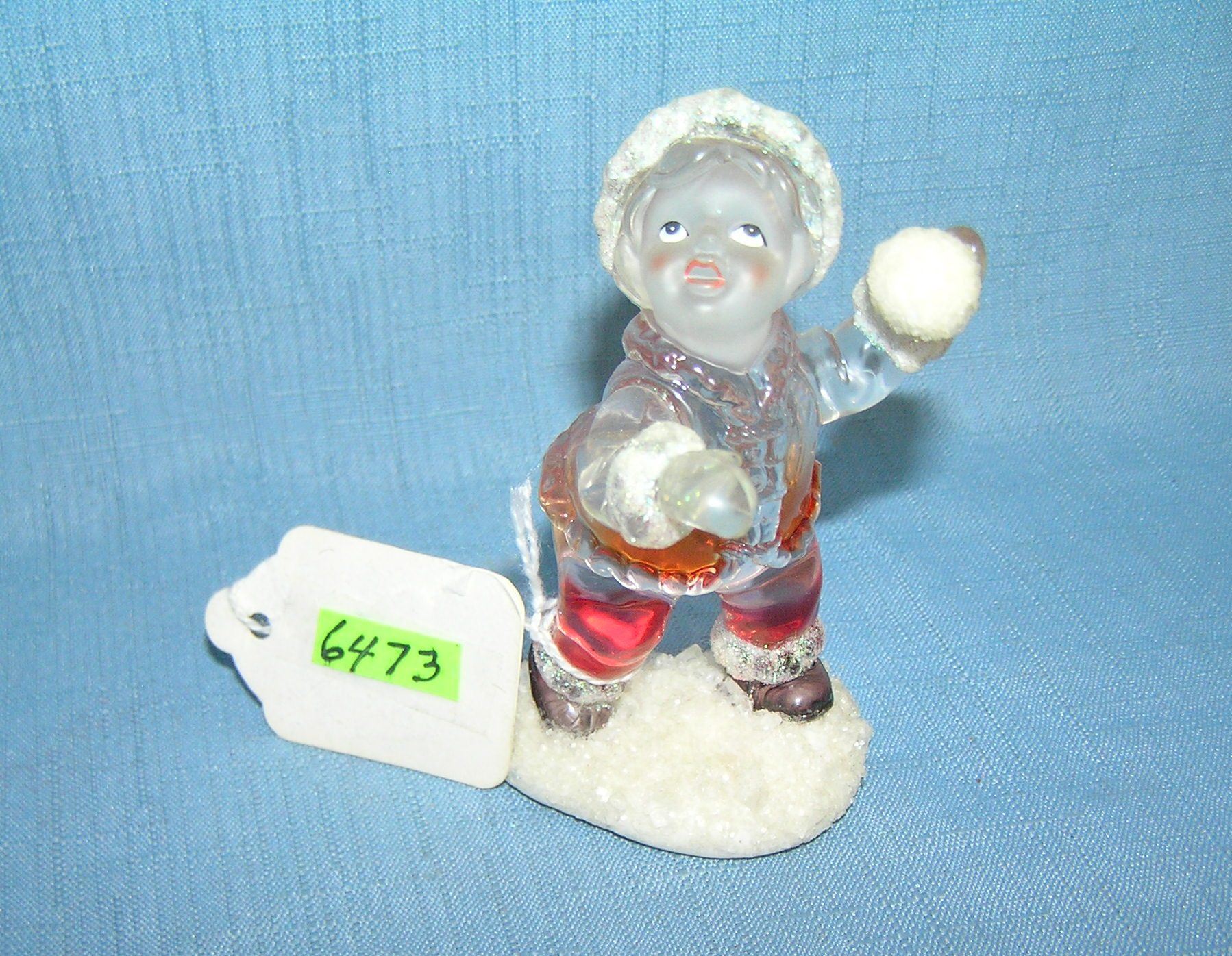 Colorized glass child figure with snowball est. value $25.00-$30.00