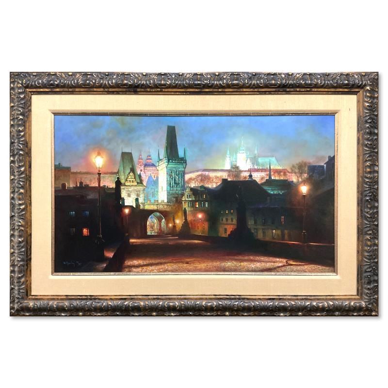 "Colors of Night" is a hand embellished limited edition giclee on board by Yuri Obuhovskiy, numbered 14/195 and hand signed. This piece comes framed. Includes Letter of Authenticity. Measures approx. 36.5" x 55" (frame), 23" x 41.5" (image). There is some minor wear on the frame.