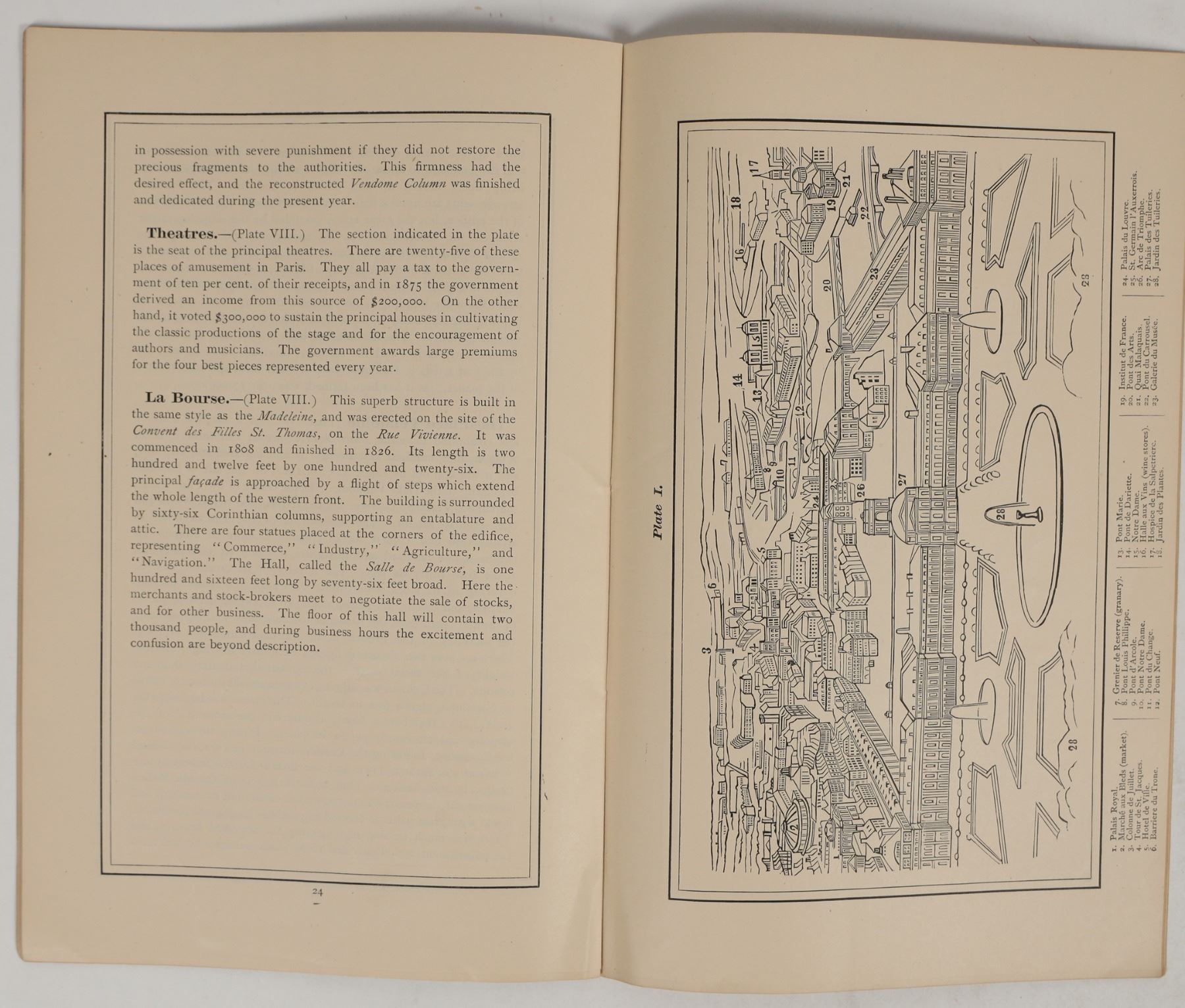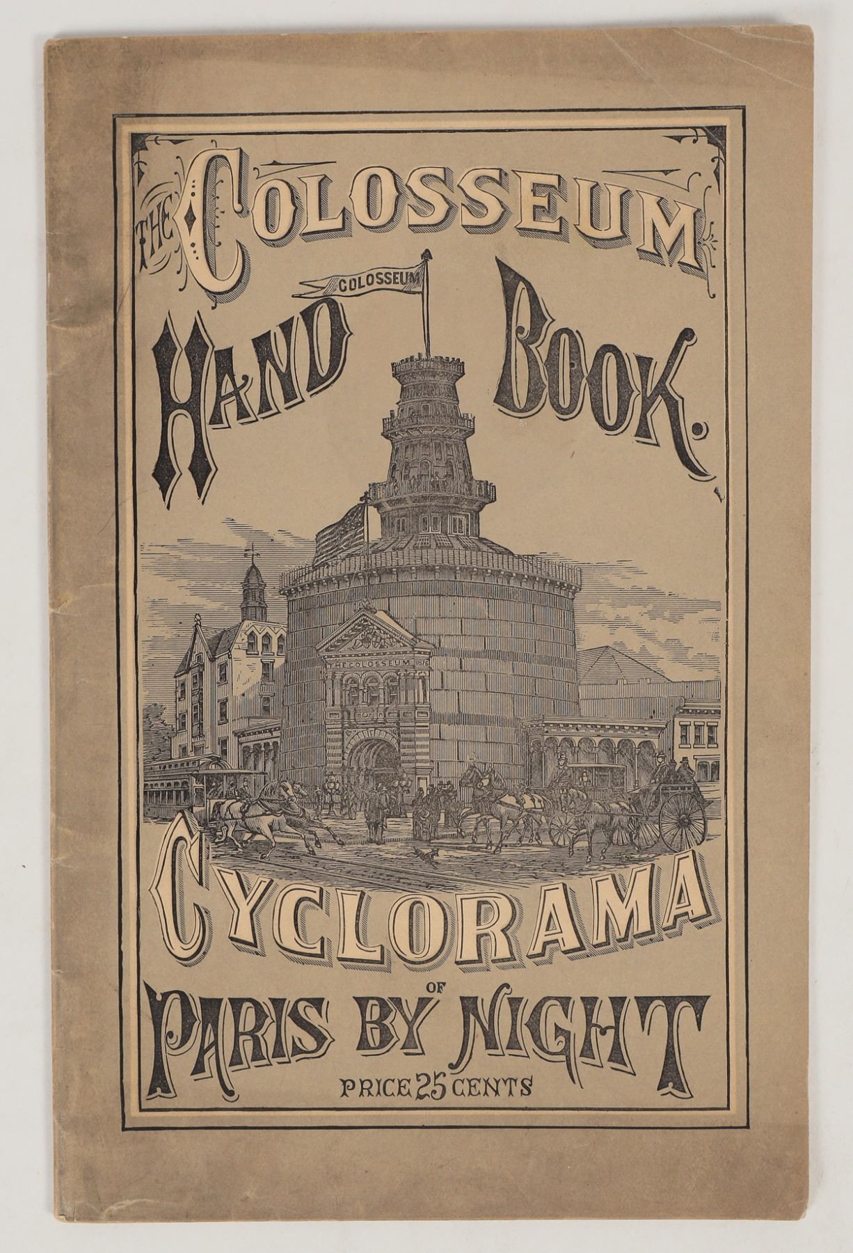 Colosseum Hand Book-Cyclorama Paris By Knight, 1876, 33 pages, includes eight artist rendering of various parts of Paris shoeing points of interest. The handbook is meant to be guide for tourist visiting Paris. Very good cond.