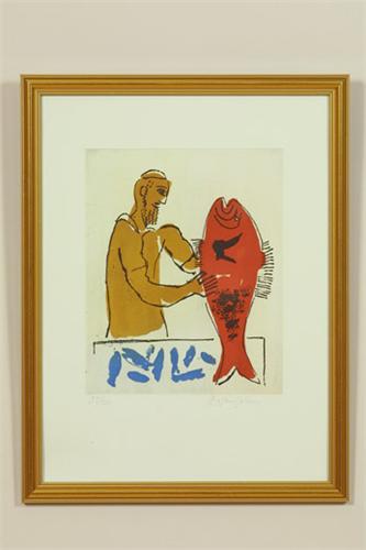 Colour-etching, Lennart Rosensohn, ”Fishmonger”
