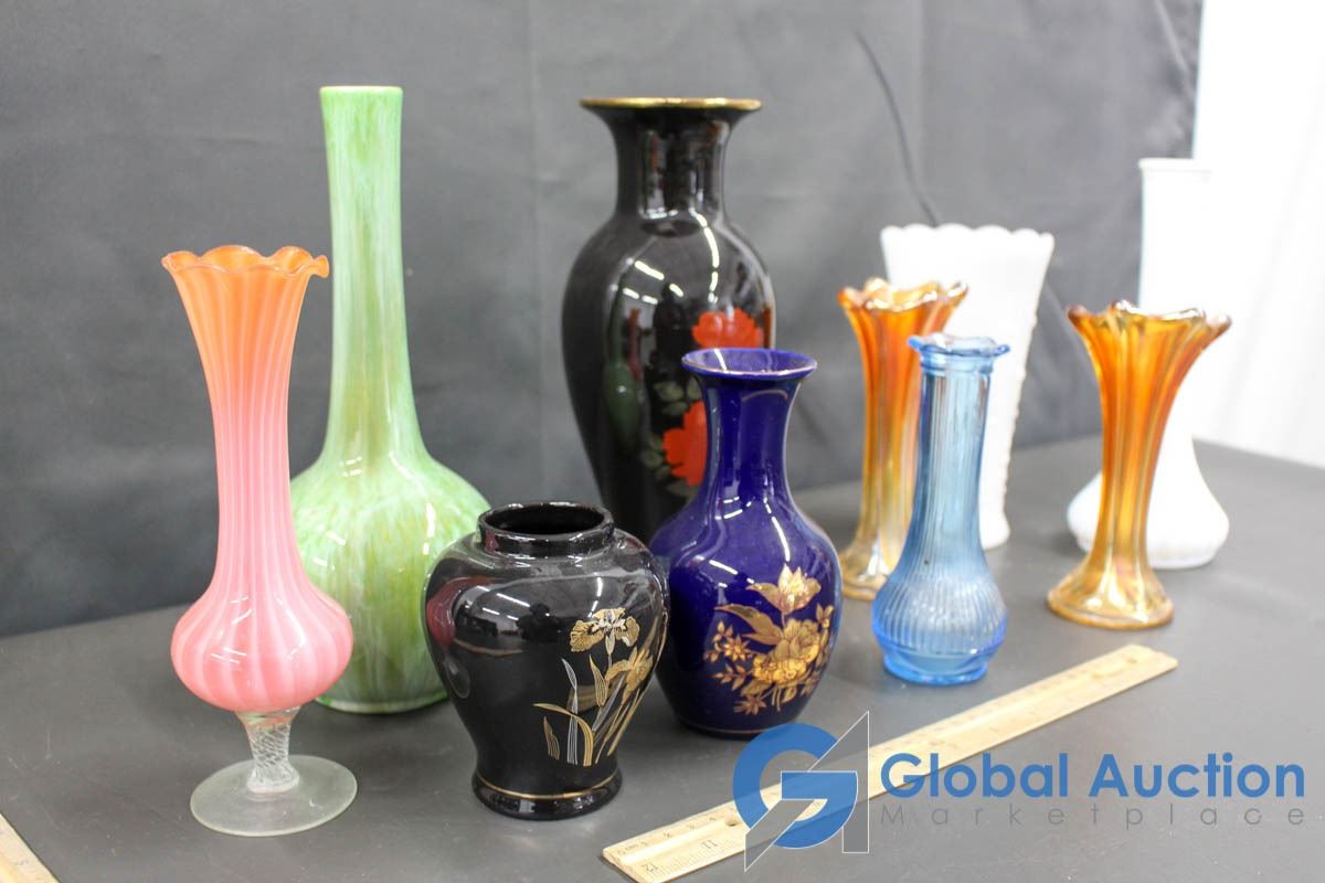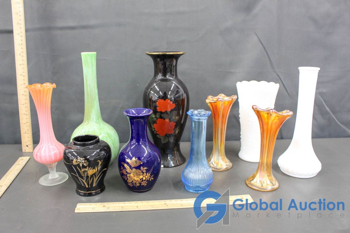 Coloured Vases (10) - Milk Glass, Ceramic, etc.