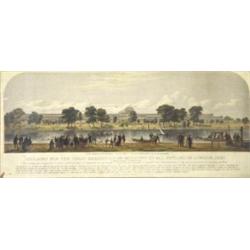 Coloured print Building for the Great Exhibition of the Industry of all Nations in London 1851, London published by Ackermann & Co 1851, 22cm x 50cm