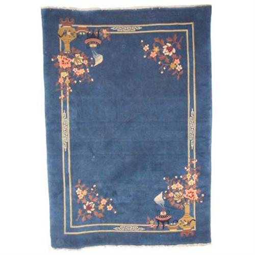 The collection we introduce to you is a exquisite pure wool rug with beautiful floral pattern handmade in Tibet.Rugs and carpets are basic necessities in the Tibetan daily life.The high quality hand spun,vegetable dyed look,and the primitive but highly stylized patterns greatly appealed to westerners.Typically made for use as mats to sit on or for meditation,door and window covers,horse saddles,bed covers and pillar wrapping,the traditional Tibetan weaving generally reflect traditional Tibetan culture and religion.However,Chinese designs were also dominant as seen in the display of dragons,phoenix,clouds, floral and lotus images.