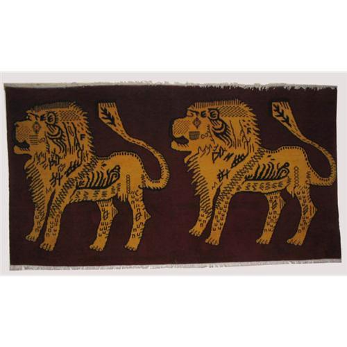 The collection we introduce to you is a exquisite pure wool rug with beautiful lion pattern handmade in Tibet.Rugs and carpets are basic necessities in the Tibetan daily life.The high quality hand spun,vegetable dyed look,and the primitive but highly stylized patterns greatly appealed to westerners.Typically made for use as mats to sit on or for meditation,door and window covers,horse saddles,bed covers and pillar wrapping,the traditional Tibetan weaving generally reflect traditional Tibetan culture and religion.However,Chinese designs were also dominant as seen in the display of dragons,phoenix,clouds, floral and lotus images.