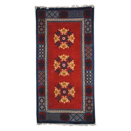 The collection we introduce to you is a exquisite pure wool rug with beautiful flower pattern handmade in Tibet.Rugs and carpets are basic necessities in the Tibetan daily life.The high quality hand spun,vegetable dyed look,and the primitive but highly stylized patterns greatly appealed to westerners.Typically made for use as mats to sit on or for meditation,door and window covers,horse saddles,bed covers and pillar wrapping,the traditional Tibetan weaving generally reflect traditional Tibetan culture and religion.However,Chinese designs were also dominant as seen in the display of dragons,phoenix,clouds, floral and lotus images.
