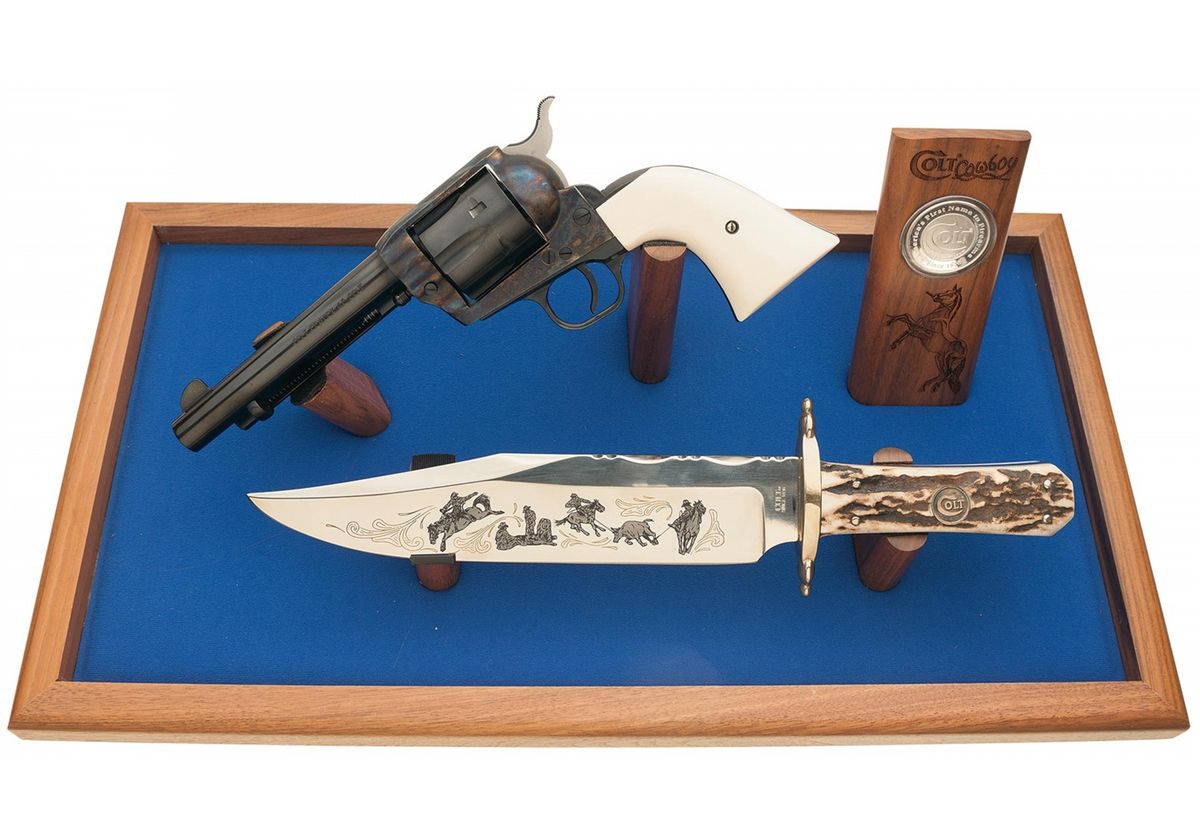 Colt 1 of 1,000 Cowboy Single Action Army Revolver and Knife Set with Display Case and Boxes