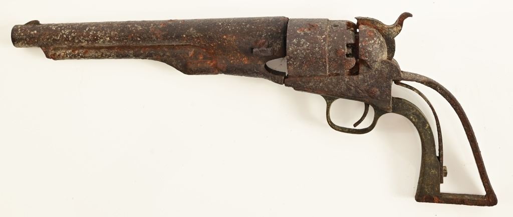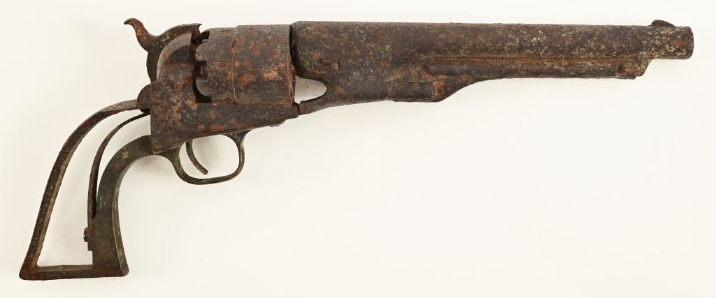 S/N 8381, circa 1861. 8" barrel, butt notched for stock. Barrel, cylinder, and action seized from rust.