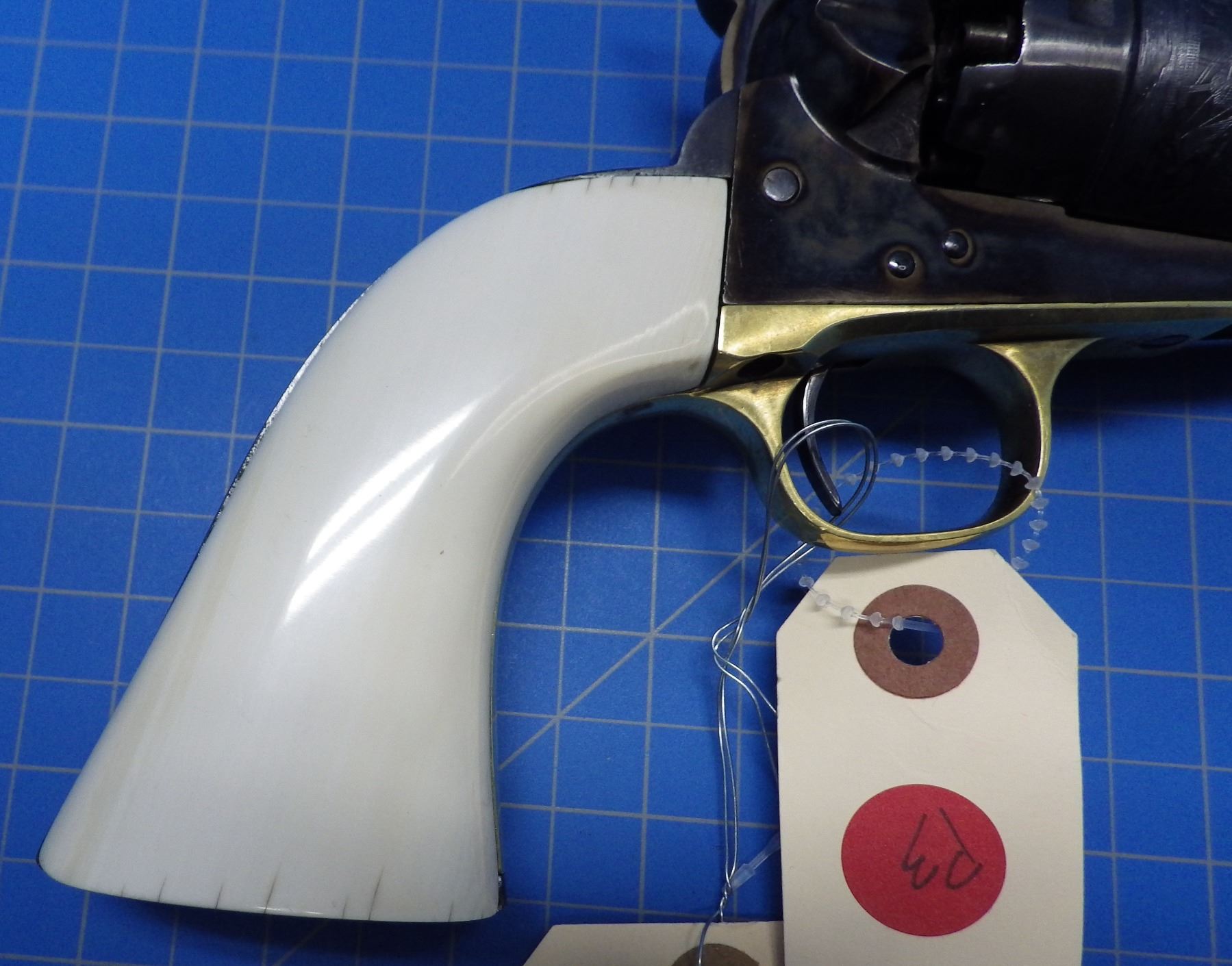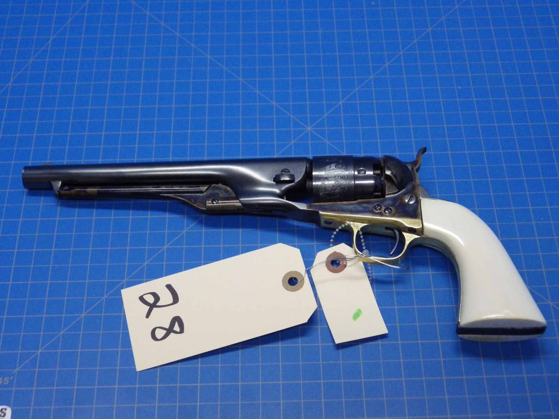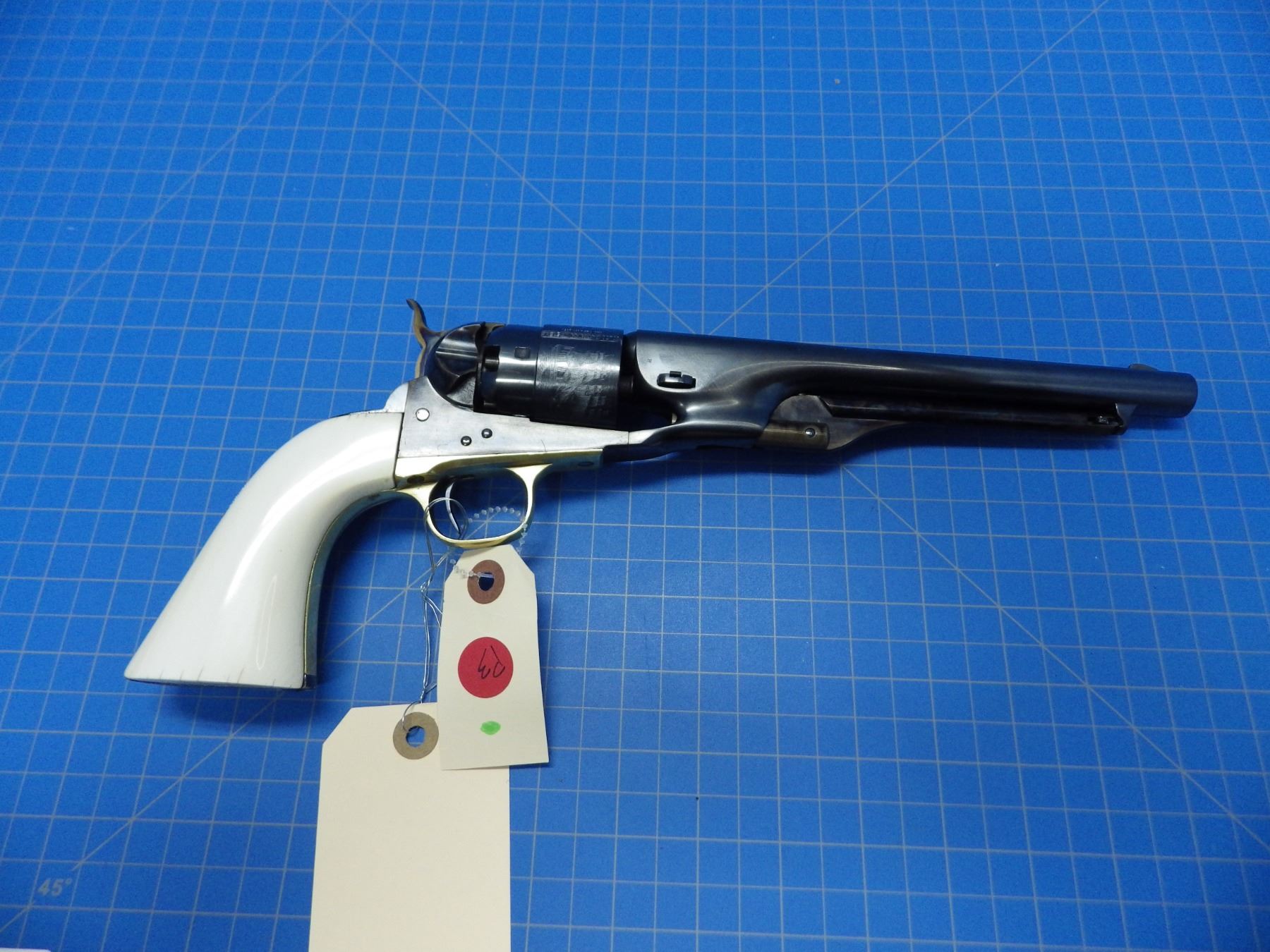 Colt 1860 Army percusssion revolver 44 caliber, 8 inch barrel, ivory grips, serial number 39587, pro