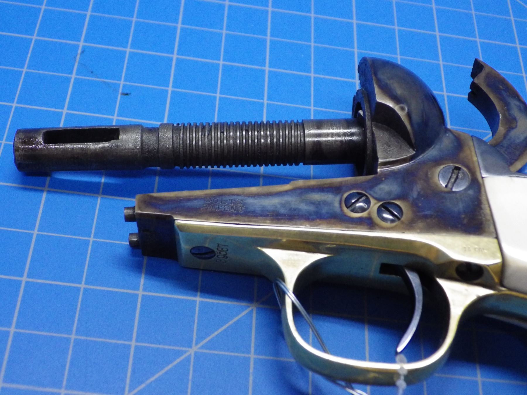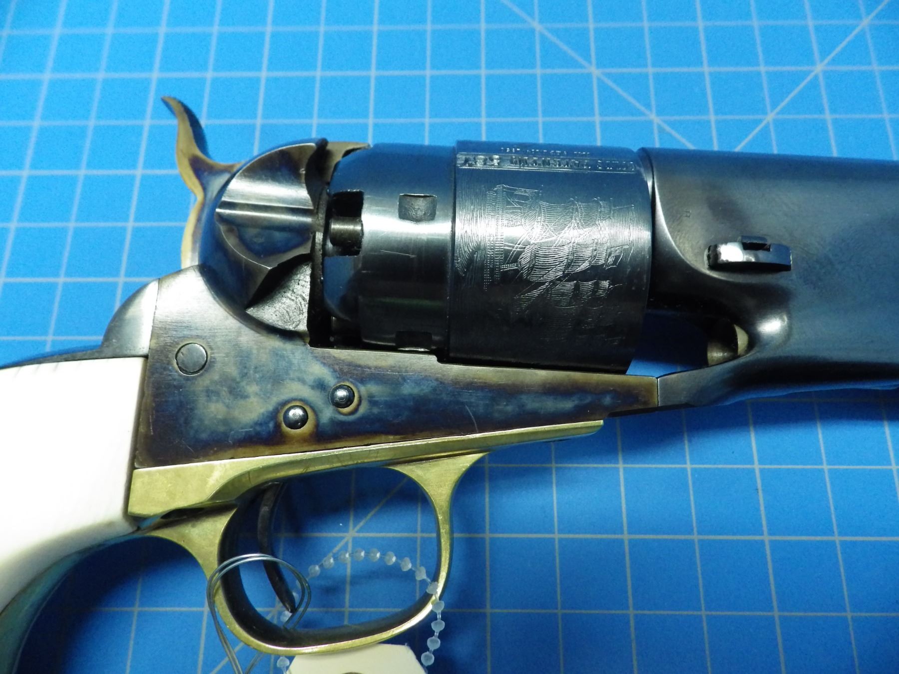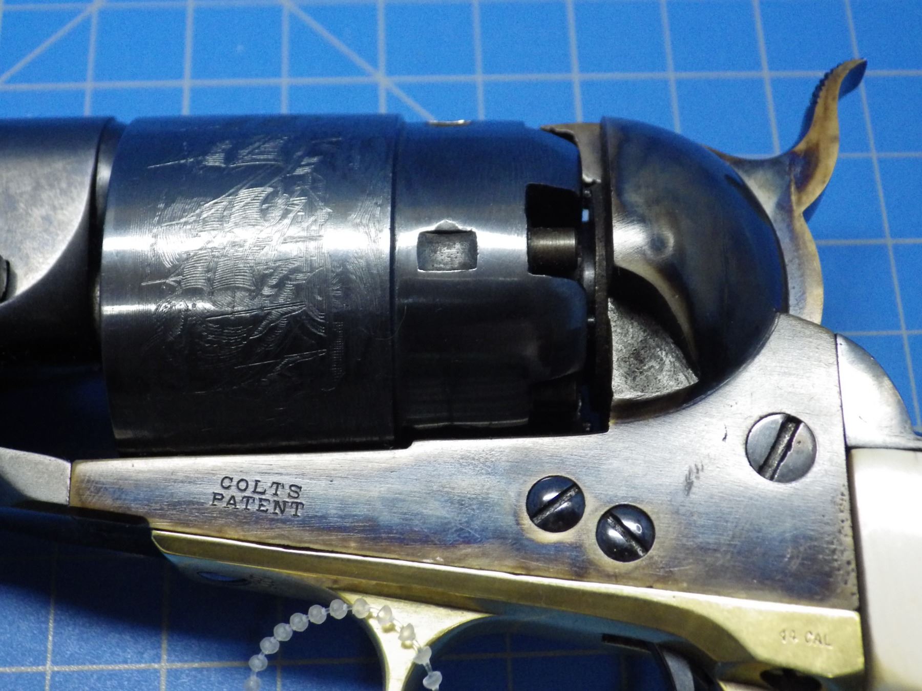 Colt 1860 Army percusssion revolver 44 caliber, 8 inch barrel, ivory grips, serial number 39587, pro