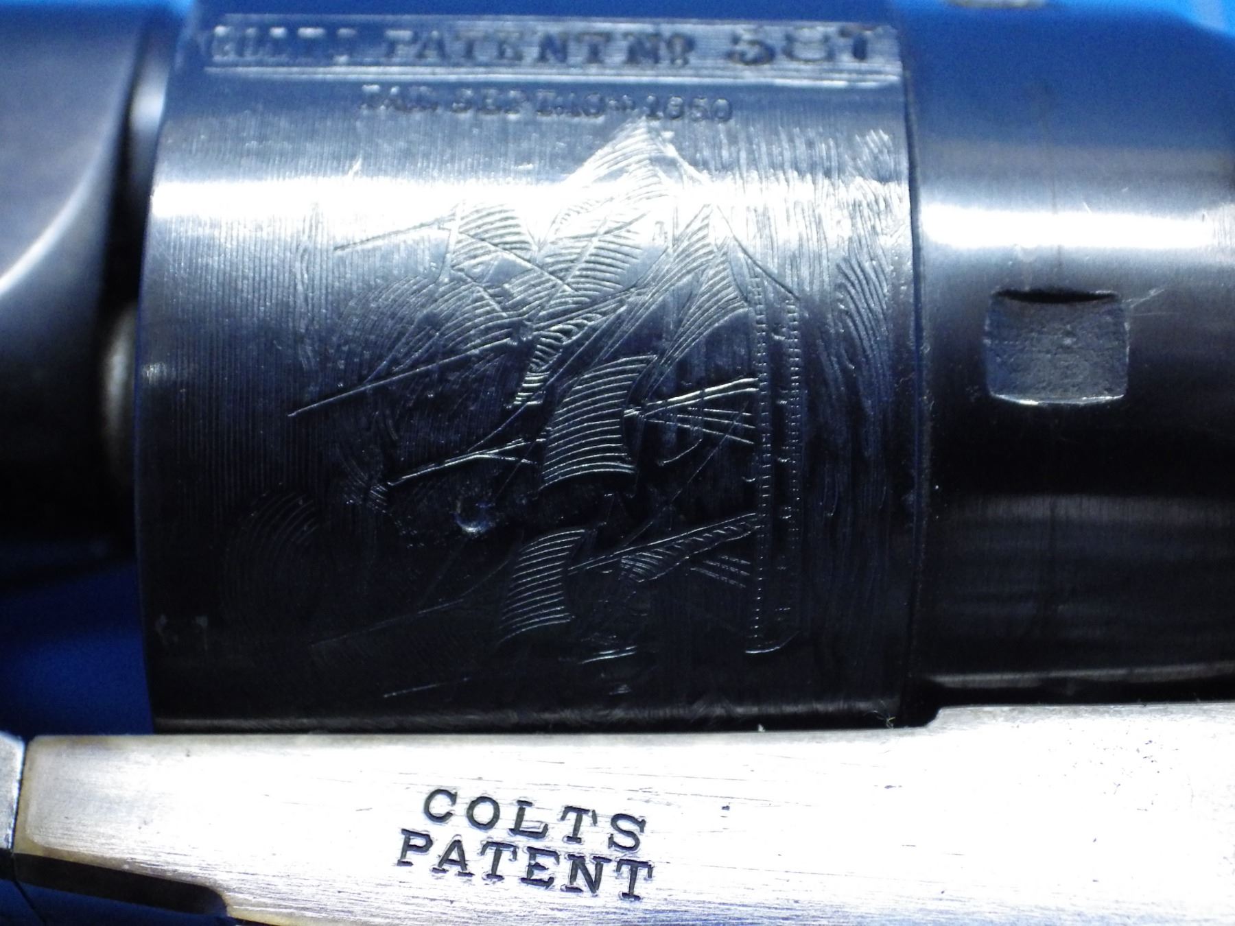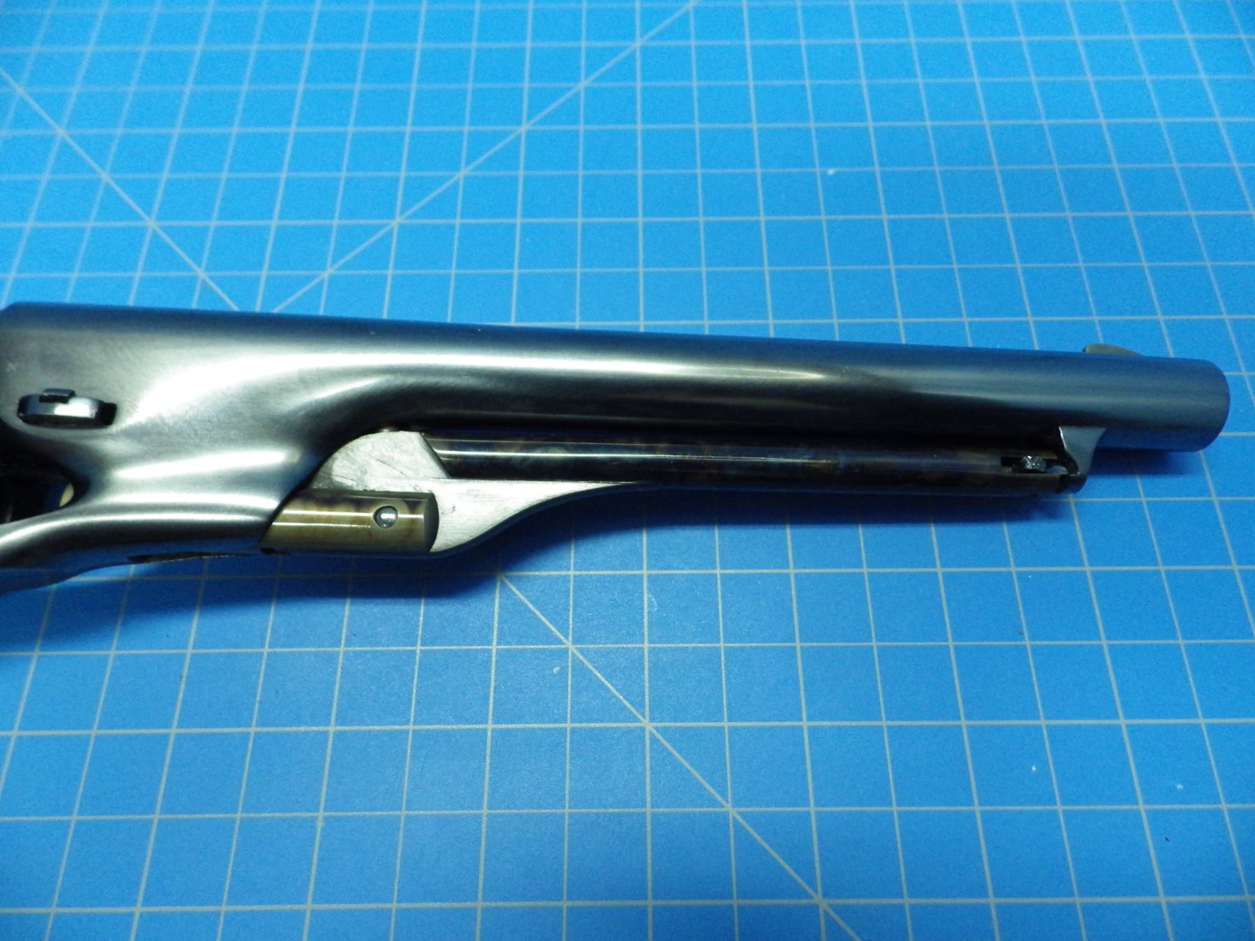 Colt 1860 Army percusssion revolver 44 caliber, 8 inch barrel, ivory grips, serial number 39587, professionally refinished. This appears to be an antique pistol that has been refinished using some new parts likely the barrel and cyllinder. Functions as designed. CONSIGNOR ITEM # P3