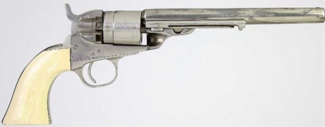 Colt 1862 .38 cal. NVSN conversion revolverwith 6 1/2" barrel, revolver is heavily buffed to bright, no barrel address, frame markings, or cylinder scene visible, fitted with great set of ivory grips, action functions nicely, a perfect restorationproject or parts gun. from John Hunter collection. Antique. Est. 300-600