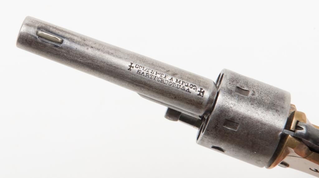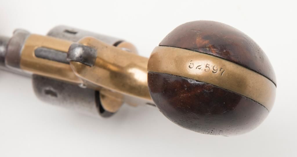 Colt 1872, 7 shot open top revolver, serial number 32597 in good to very good condition with traces of original blue. Est.: $300-$600.