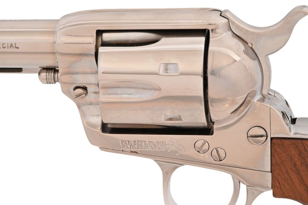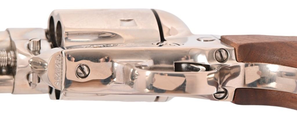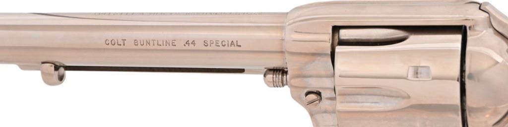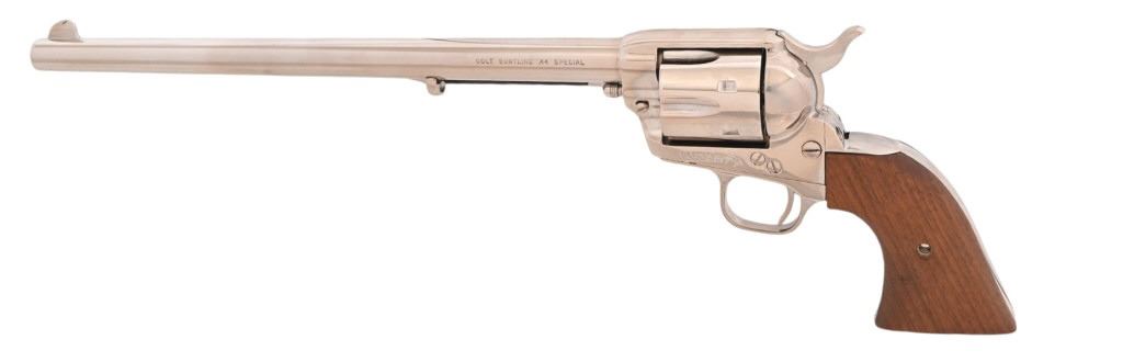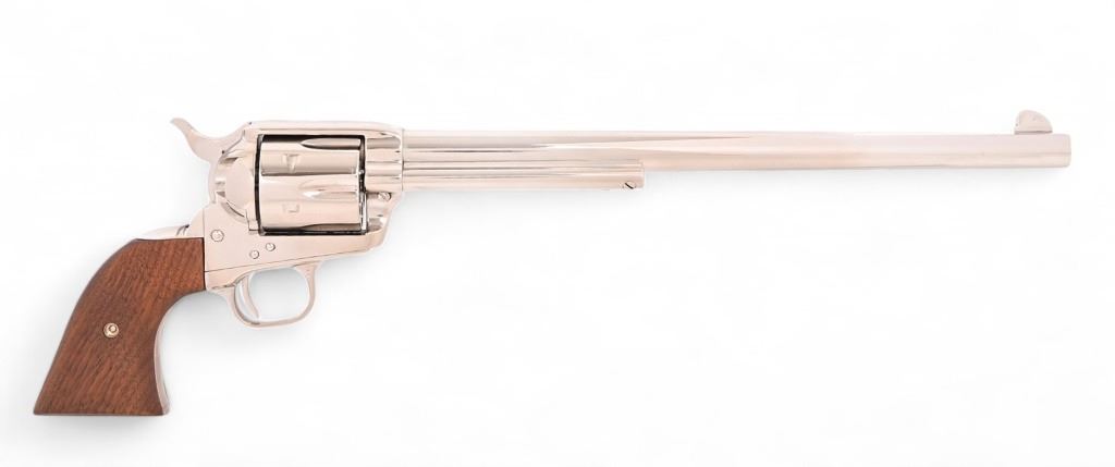 SN SA46475, factory letter shows shipped to Alaska in 1982. Nickel plated Buntline model with 12" barrel. 3rd. Gen. Very good condition, good bore, wood grips. Modern.