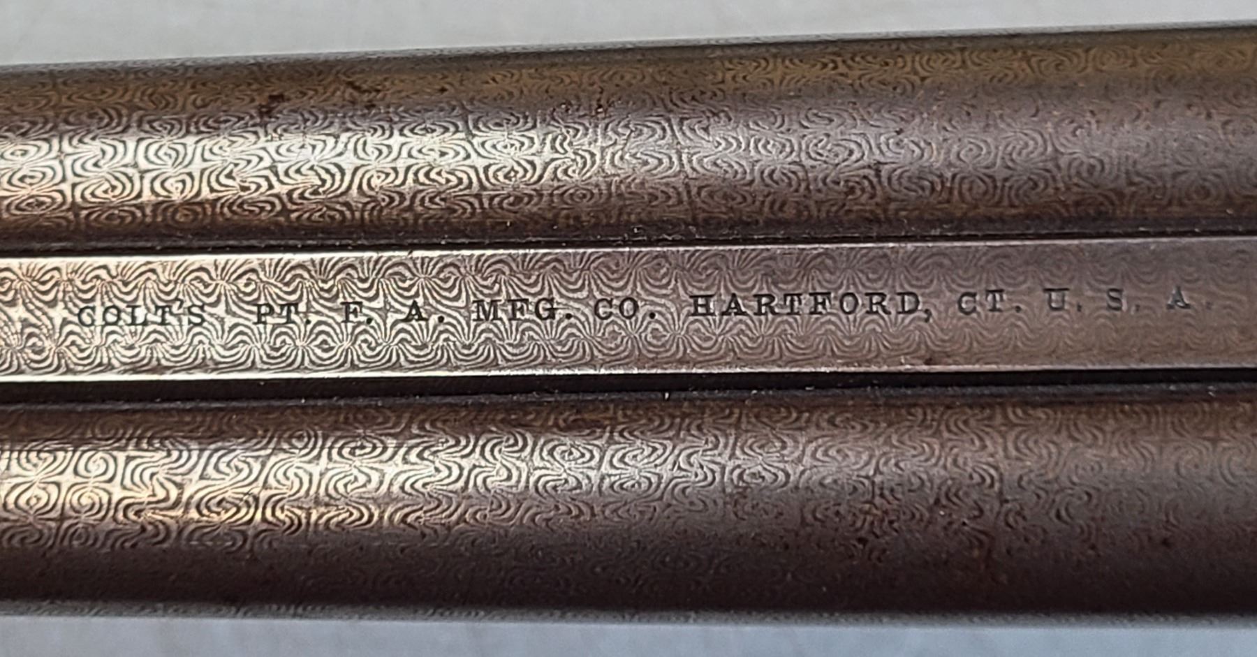 Stamping on top of barrel is COLTS PT F.A. MFG CO HARTFORD CT USA along centre