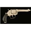 Engraved large frame double action revolver chambered in .44-40 Winchester, circa 1899. Features a nickel plated refinish, 'C' coverage fine floral scroll engraving. shortened blade front sight, 'v' notched rear sight, ejector rod, fluted six-shot cylinder, smooth trigger, knurled hammer spur and two-piece checkered black replacement grips. Revolver retains nearly all it's nickel plated refinish showing only few light handling marks. The markings have been restored and are crisp. Action works properly in double action with solid lock-up but will not function in single action as the hammer will not lock in the cocked position. The bore has dulled showing light rifling & scattered pitting and the reproduction grips are fine. Condition is fine as restored. ***C&R Firearm*** ***Modern Firearm***