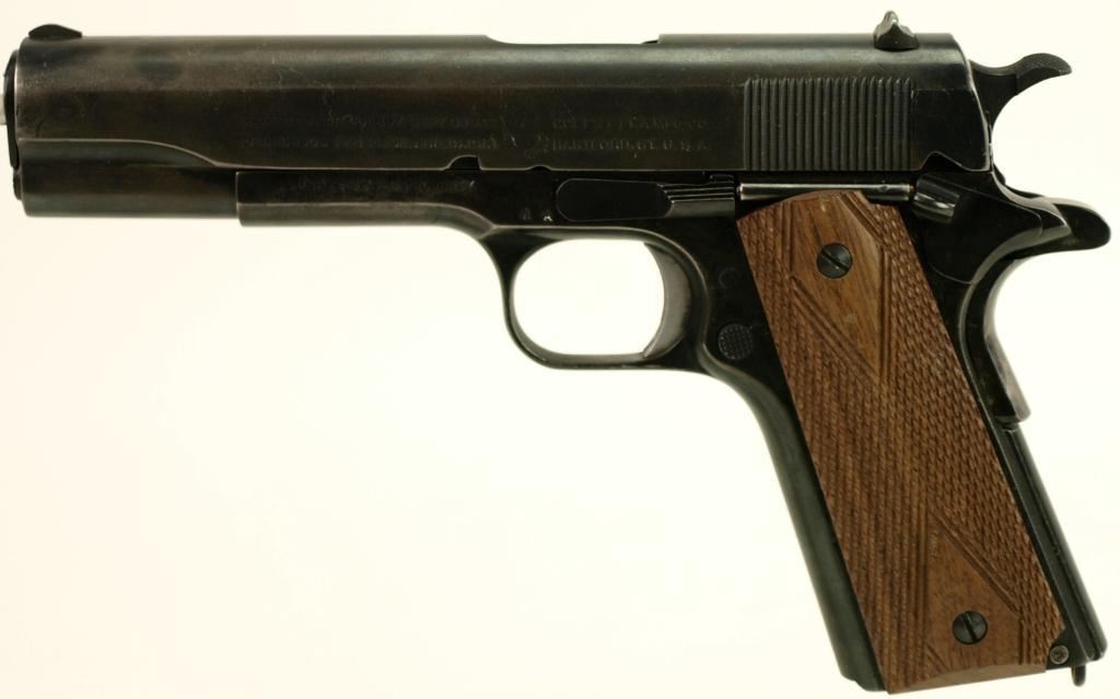5" barrel, reblued finish, replaced double diamond grips, left side marked "United States Property", inspector stamp behind trigger, AA stamp, missing clip. Good action, fine bore. Mfg'd 1917. FFL required.