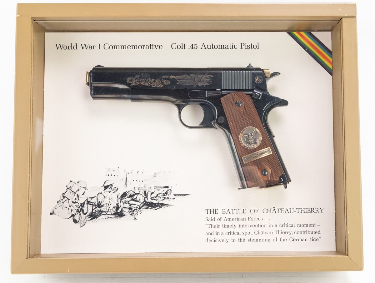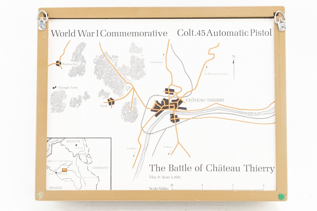 Colt 1911 WWI Series "Battle of Chateau-Thierry" Commemorative display gun. Pristine unfired condition with frame and all packaging! MFG 1967 1 of 4 matching serial commemorative WWI Series in this auction Great wall art! C&R Eligible. S/N: 3236-CT