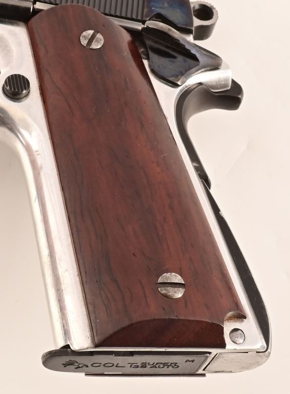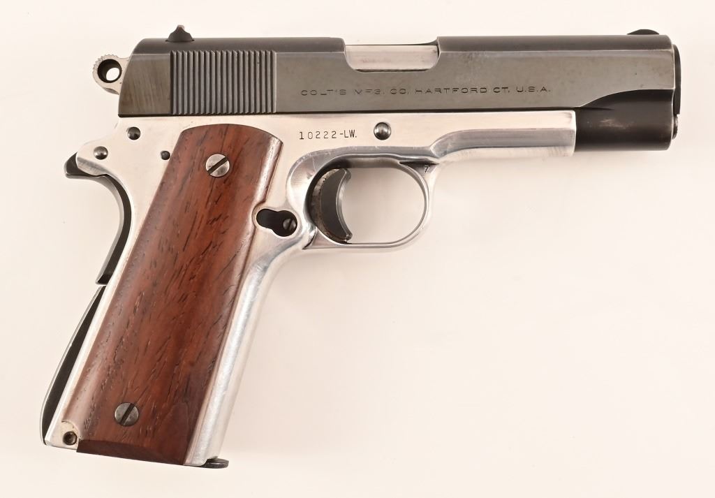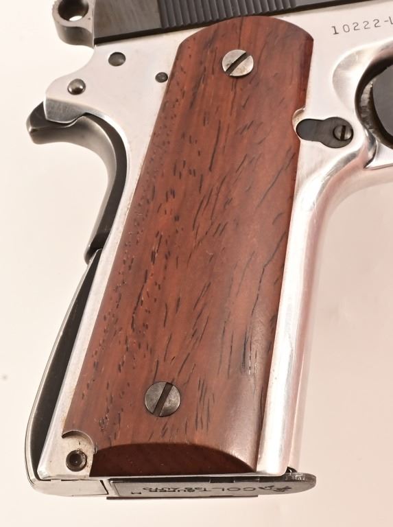 S/N 10222LW. Nickel and blue finish, with wood grips.