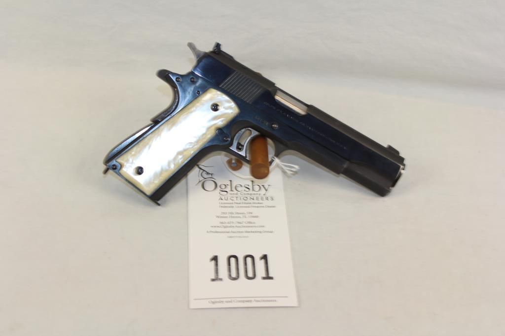Colt 1911 National Match, 5" Barrel, Pearl Grips, Frame laser engraved with "SAL DEL MAR" on LH side. A Beautiful Gun in Excellent Condition!