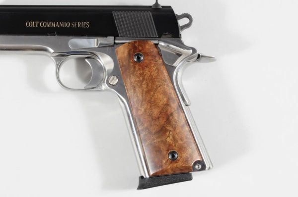FFL Bright blue/ Nickel finish. Presentation grips, "Jack Dean" engraved on slide. Glass top case- stamped "U.S. Marshal".