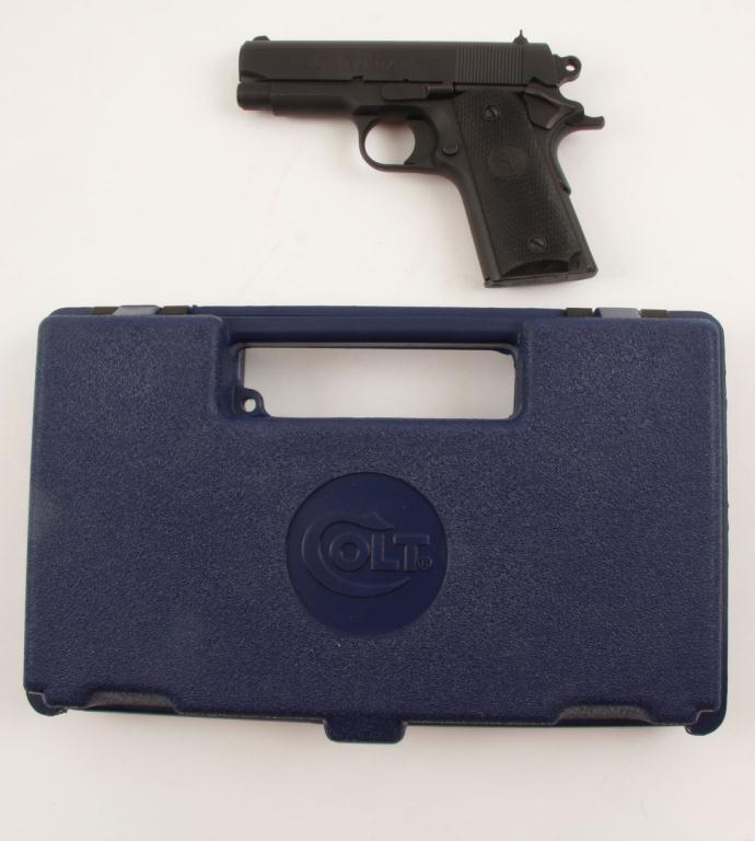 Colt 1991-A1 Compact Cal .45auto SN:CP25084 This scarce pistol shows a matte factory finish, hard rubber Colt medallion grips, in excellent condition in its original box showing slight use.This scarce pistol shows a matte factory finish, hard rubber Colt medallion grips, in excellent condition in its original box showing slight use.