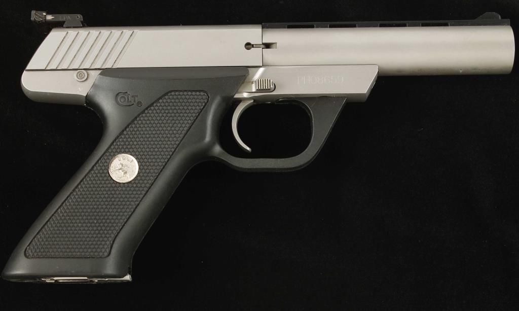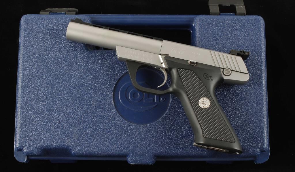 In factory case with 2 magazines, a single action semi-automatic target handgun with adjustable sights on a 4.5" bull barrel. Comes with Safety and Instruction Manual and a hex wrench for barrel removal. Polymer grip frame and trigger guard, stainless steel action and barrel. Good bore with plenty of rifling. Finish is very good. Condition: Very Good. *MUST BE REGISTERED*