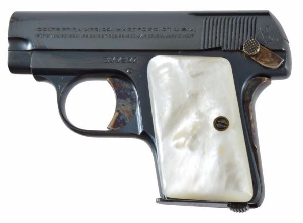 * Serial no. 390201 In original box with mother of pearl steer head grips. mint unfired condition.