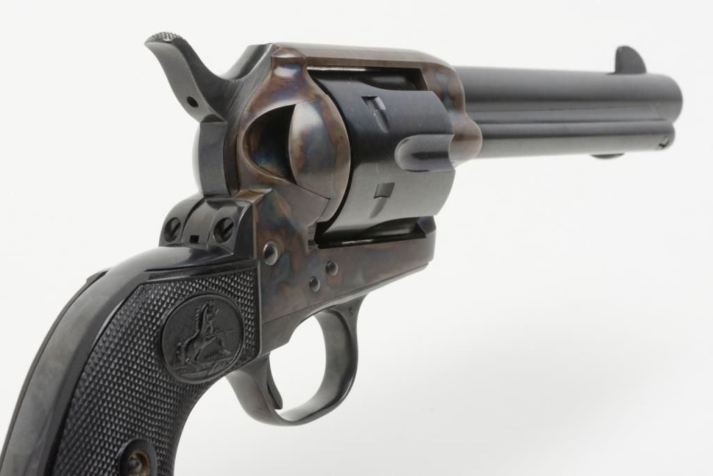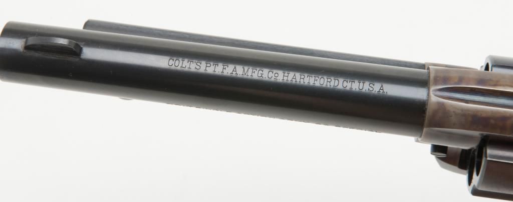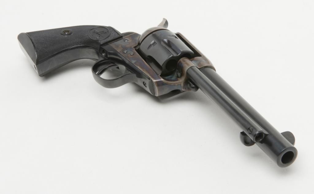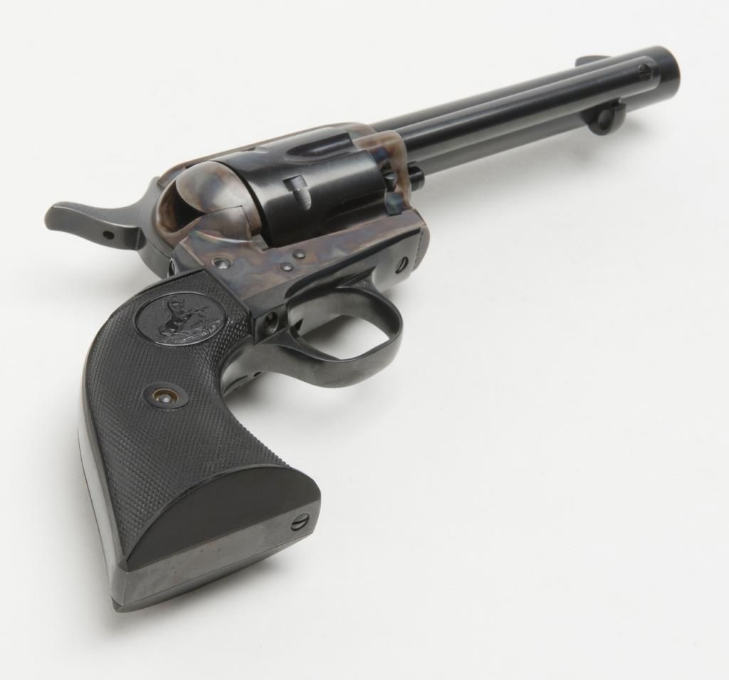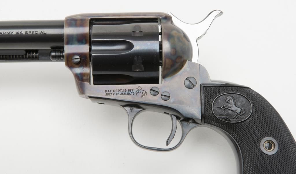 Colt 2nd Generation SAA revolver, .44 Special cal., 5-1/2” barrel, blue and case hardened finish, checkered hard rubber grips, #20410SA in overall like new condition showing little handling; in factory black box with instructionsand very good box with correct gold end label. (C&R/PPT). Est.: $1,500-$3,000.