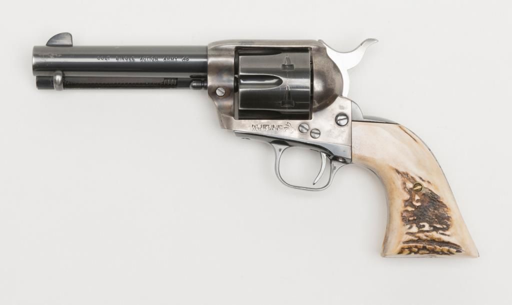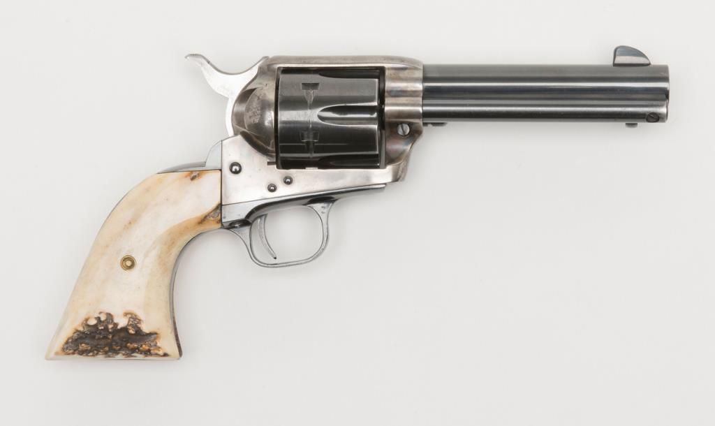 Colt 2nd Generation SAA revolver, .45 cal., 4-3/4” barrel, blue and case hardened finish, thick stag grips, #87009SA in overall fine condition showing the majority of its original finish, fine bore, crisp action, sharp markings and fine grips. From the estate of Joe Kiser. (C&R). Est.: $800-$1,600.