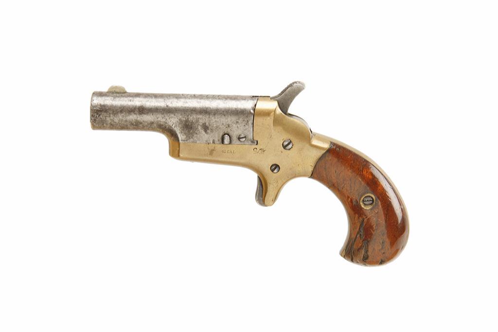 Colt #3 Derringer Cal .41 SN:NVSN This antique Colt single shot derringer is in overall good condition showing a grey patina on the barrel mixed with some scattered spots of erosion, beautiful golden colored patina on the brass frame; fair bore, goodThis antique Colt single shot derringer is in overall good condition showing a grey patina on the barrel mixed with some scattered spots of erosion, beautiful golden colored patina on the brass frame; fair bore, good action and markings,grips are complete but show some marring, particularly on the lower portion of the left grip.