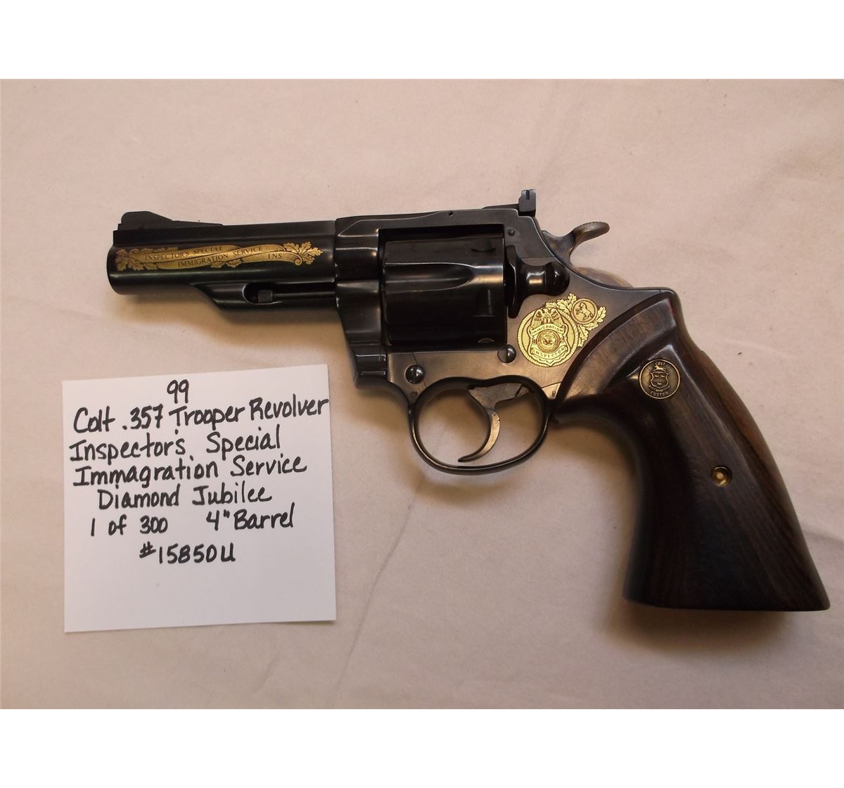 Colt .357 Trooper Revolver- Inspector's Special-Immigration Service Diamond Jubilee- 1 of 300- 4" Barrel- #15850u